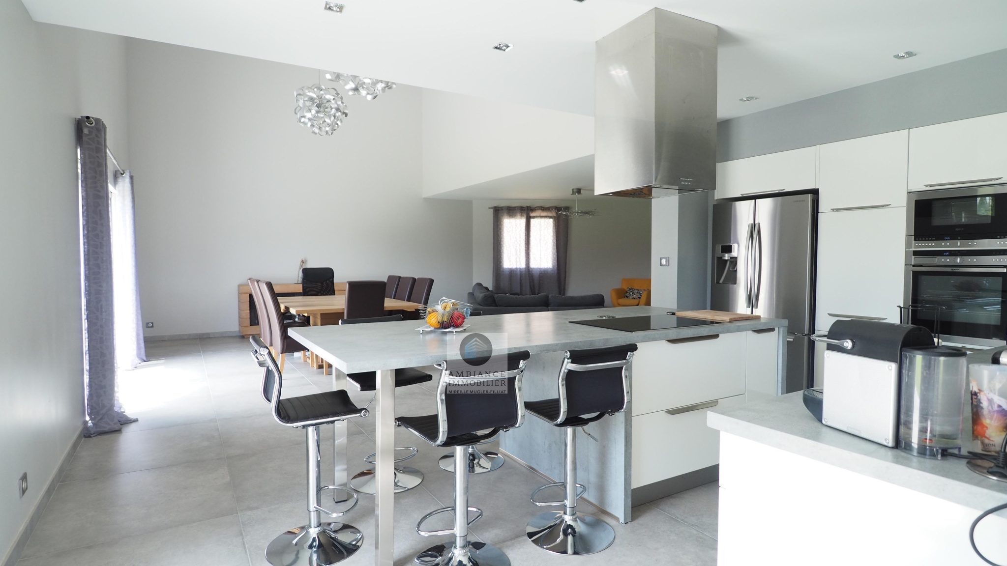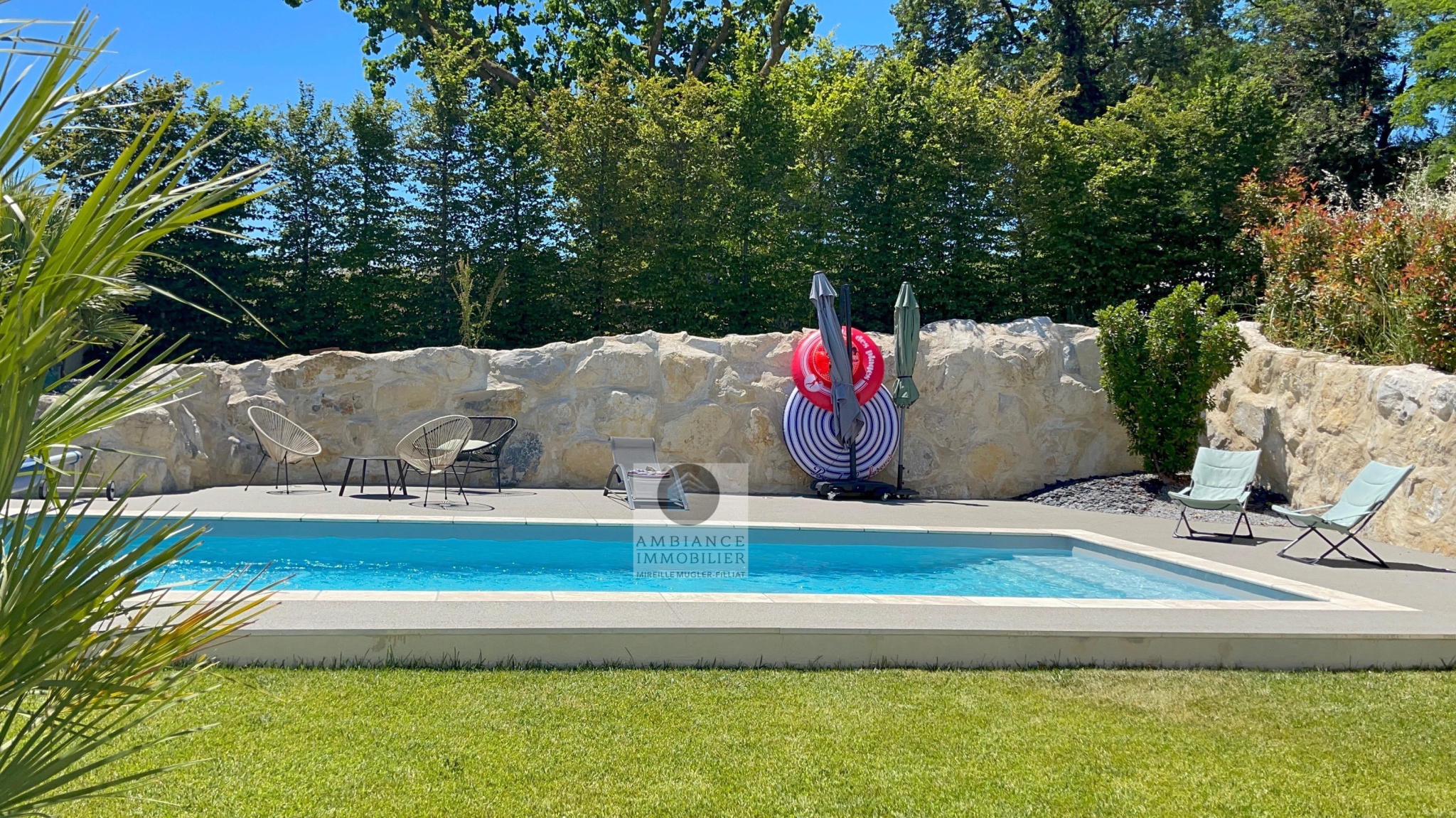 VALENCE à 3mn, un esprit Sud, la luminosité, de grandes baies vitrées offrant de belles perspectives sur un jardin joliment paysager, une conception atypique, une architecture originale et une ambiance chaleureuse pour cette maison de 123m2. Salon avec cheminée, cuisine dînatoire de 29m2 avec une cuisine intégrée contemporaine, un bureau ou chambre enfant avec cabinet […]