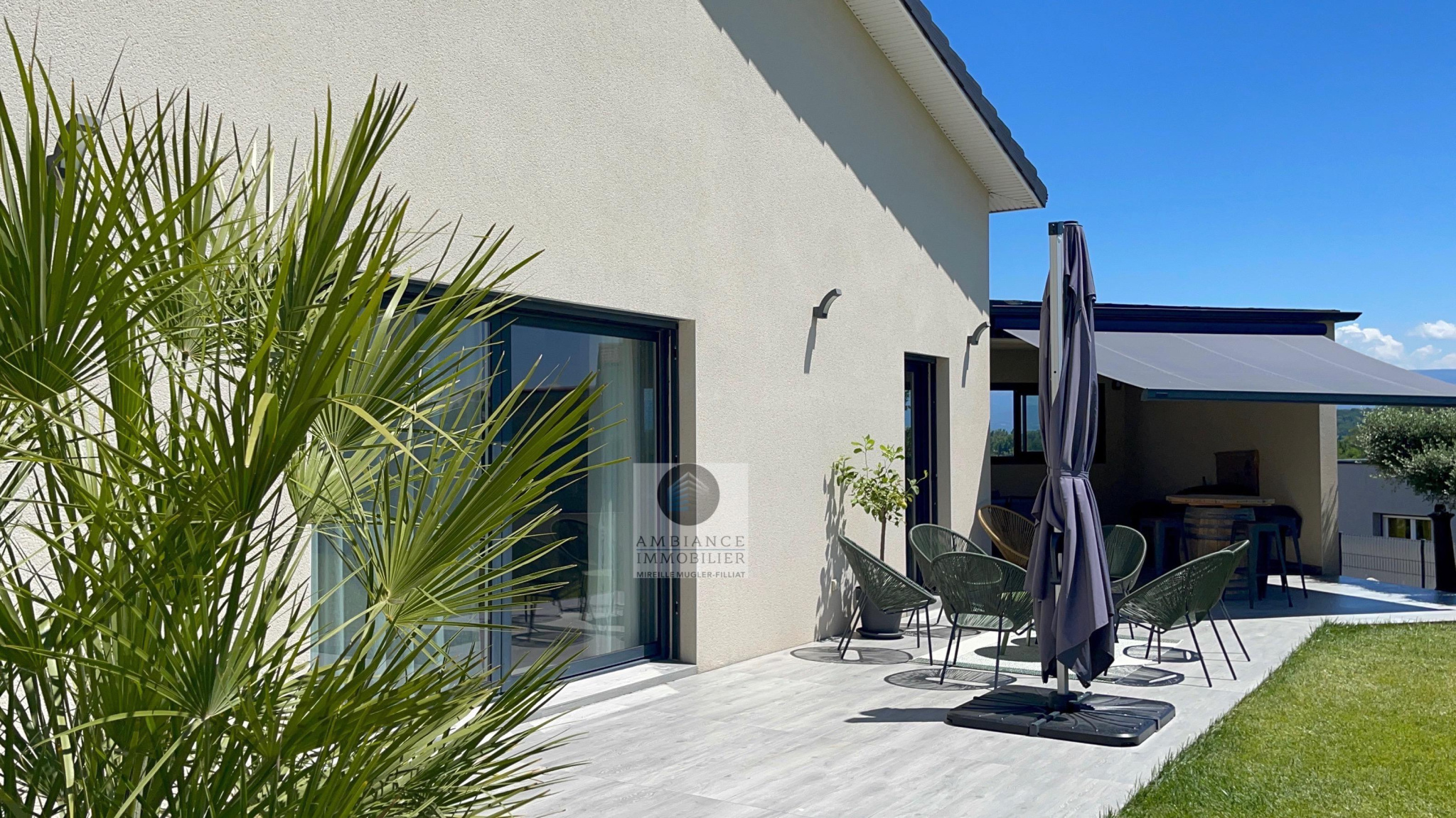 BEAUVALLON en co-exclusivité, une superbe vue, le calme, de beaux volumes, une belle exposition, des prestations de qualité pour cette maison d’architecte de 2015 de 184m2. Une pièce de vie de 82m2 : salon-séjour de 67m2, cuisine intégrée de 15m2 avec accès à une terrasse couverte de 24m2 offrant une belle perspective sur le Vercors […]