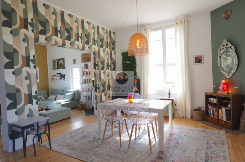 PORTES-LES-VALENCE au Centre-ville, la luminosité, de beaux volumes pour cet appartement de 117m2 au 1er et dernier étage d’une belle maison de 1950 avec...