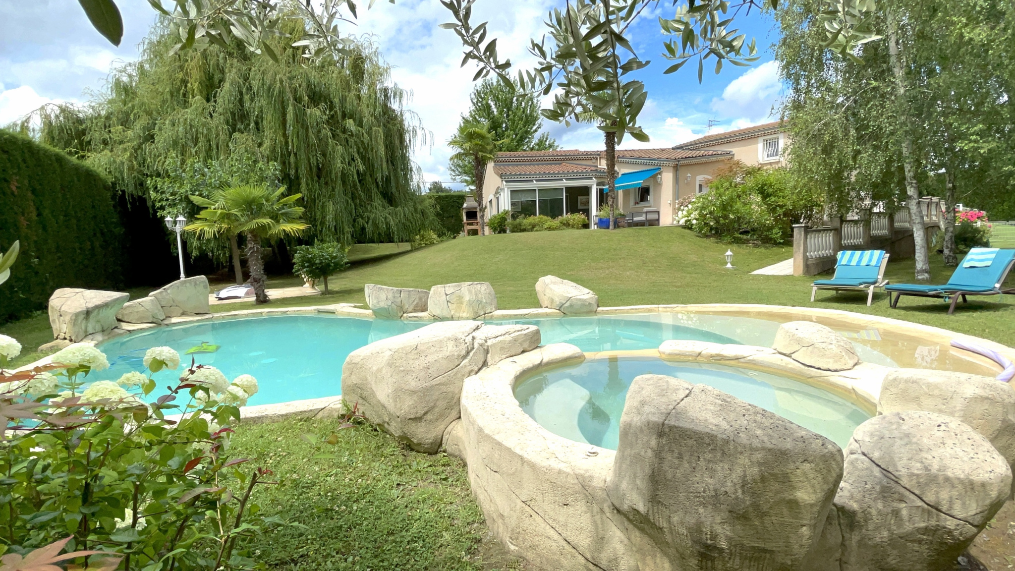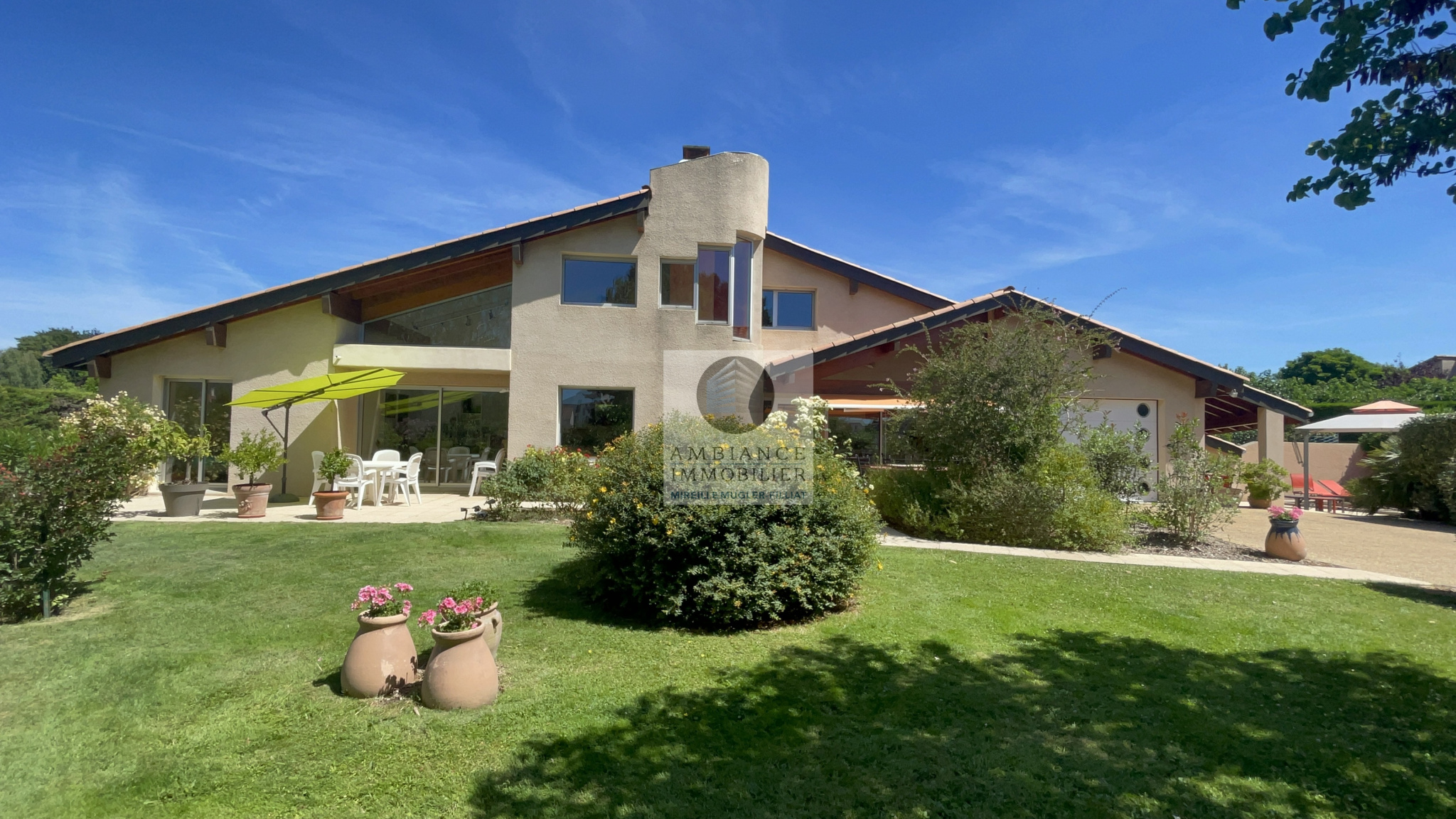 TOURNON Sud dans quartier résidentiel, le calme, la luminosité, de beaux volumes, de grandes baies vitrées offrant de belles perspectives sur le parc. Une conception agréable et un esprit contemporain pour cette maison d’architecte de plain pied de 244m2. Salon-séjour de 51m2, cuisine intégrée de 18m2 avec accès à une véranda, cellier/buanderie, un espace nuit […]