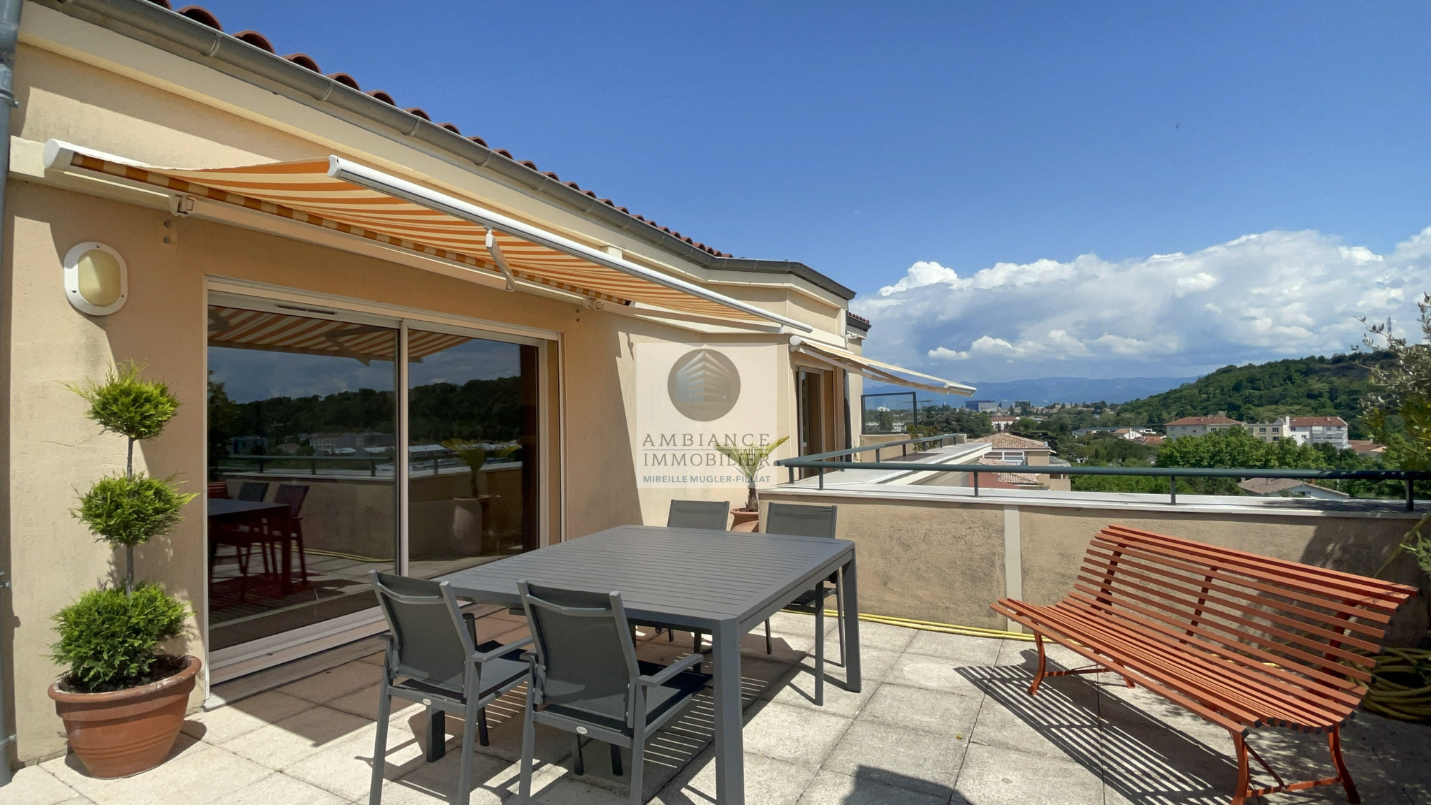 VALENCE Avenue Victor Hugo, en exclusivité, au dernier étage d’une résidence de standing de 2005, de beaux volumes, la luminosité, la vue et de très belles prestations pour cette villa sur le toit de 170m2 avec une superbe terrasse paysager de 140m2 avec stores électriques et pergola. Séjour-salon de 65m2 Sud/Ouest, cuisine intégrée, 4 chambres […]