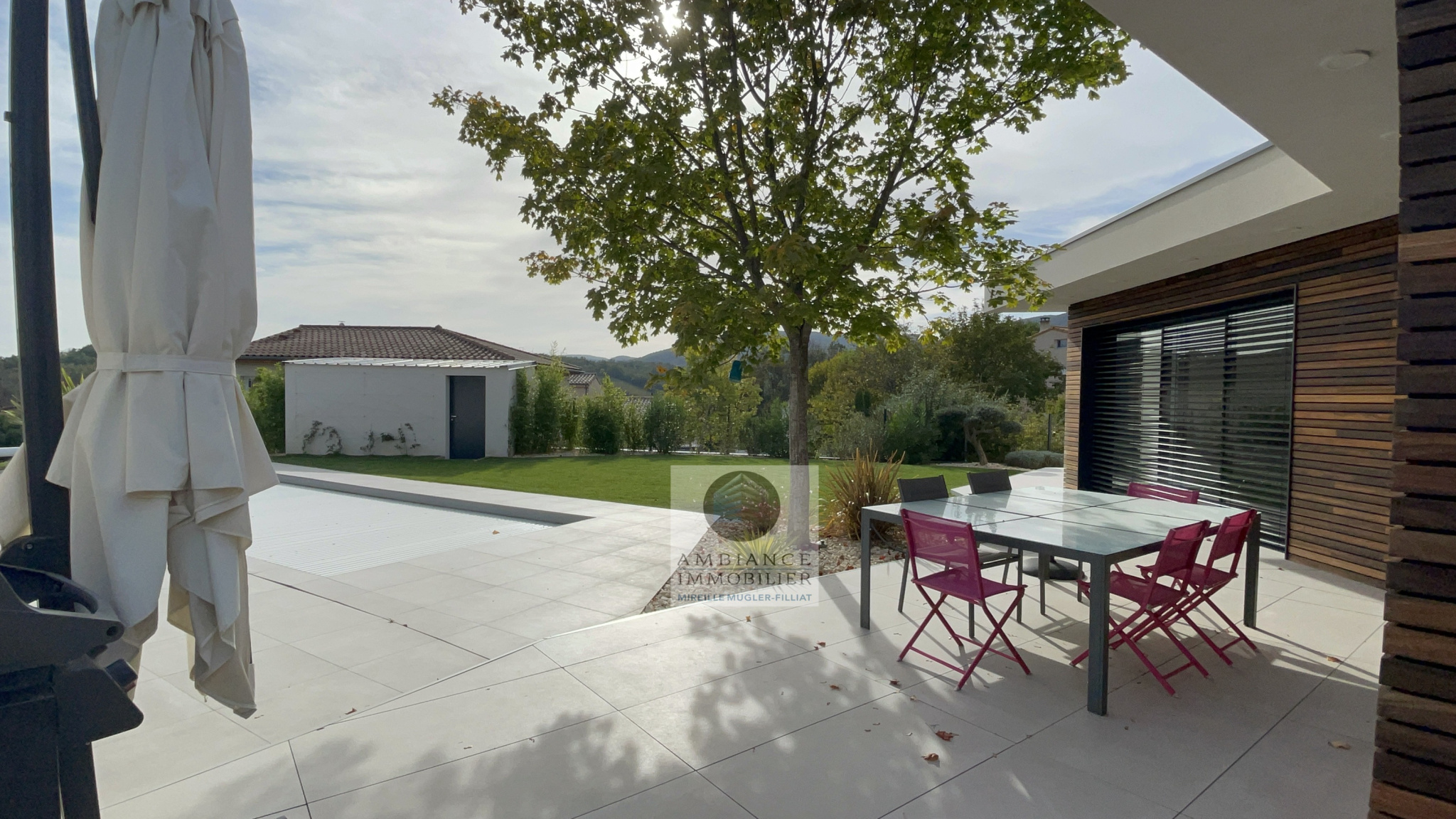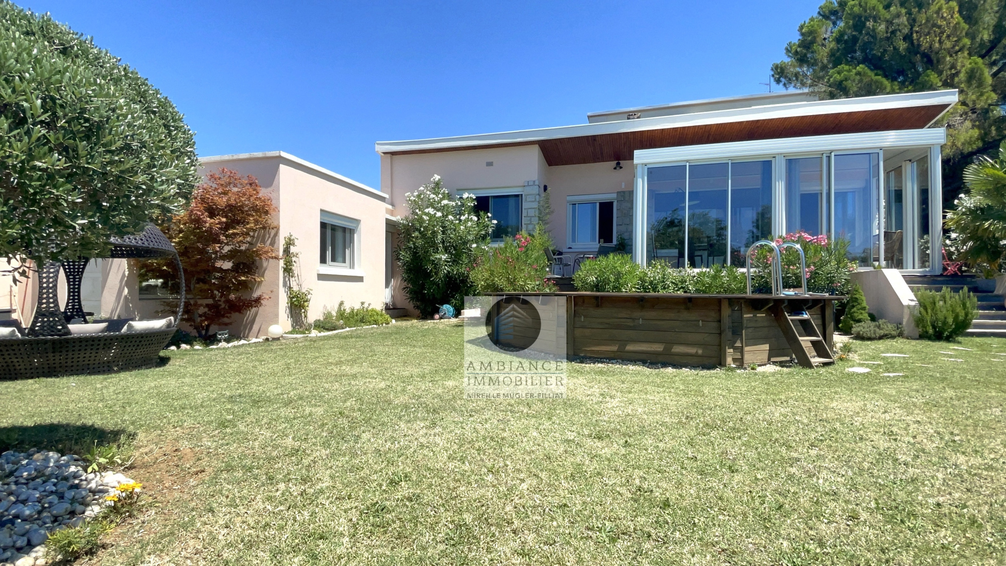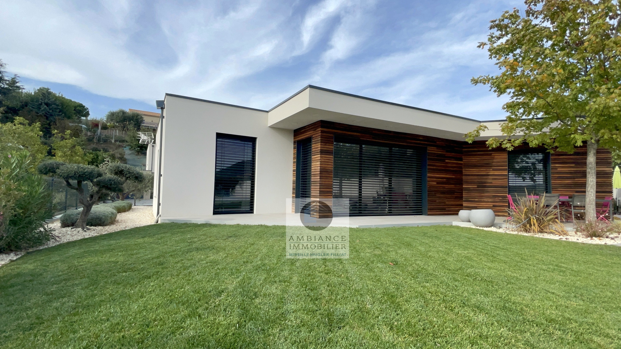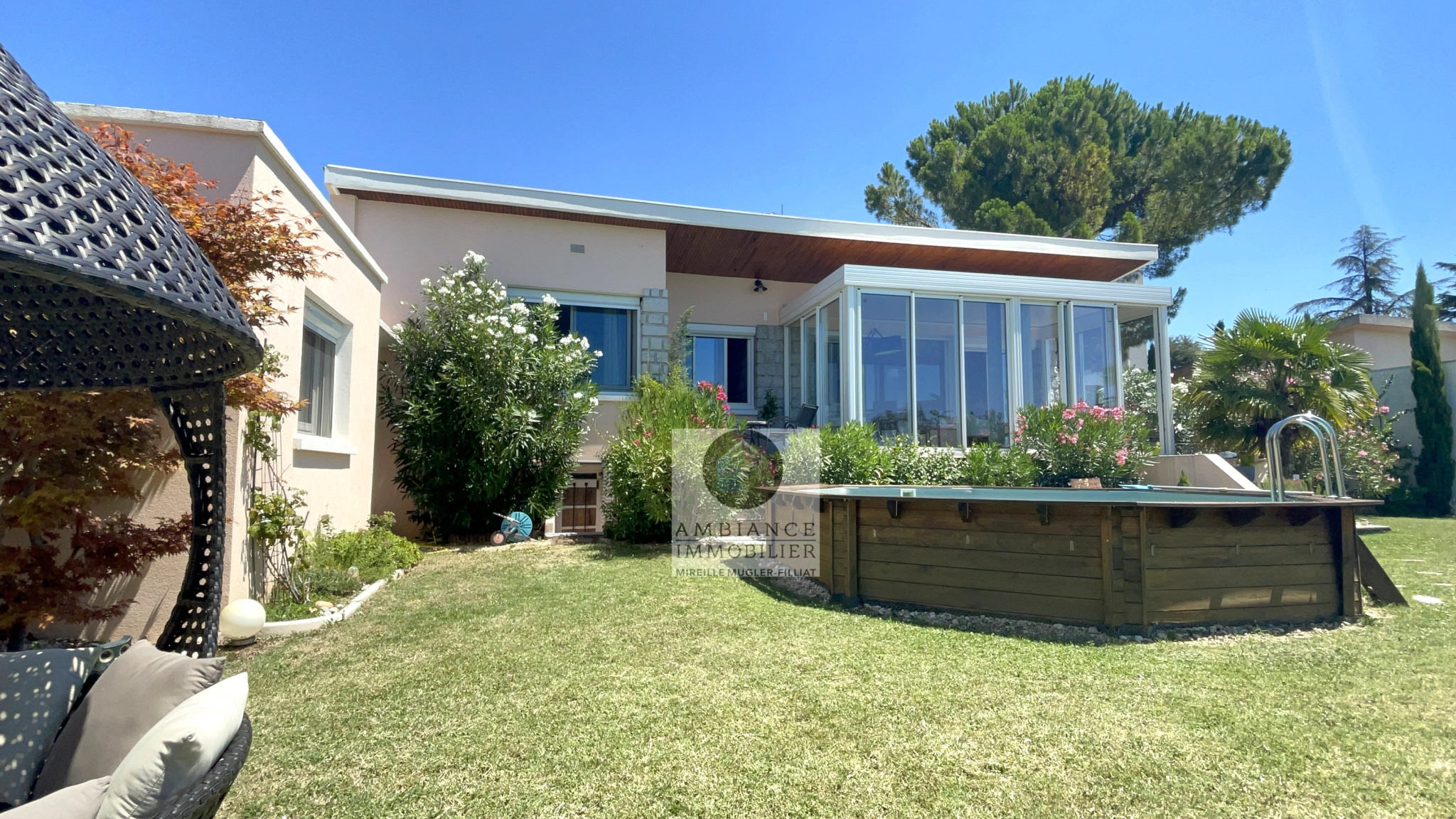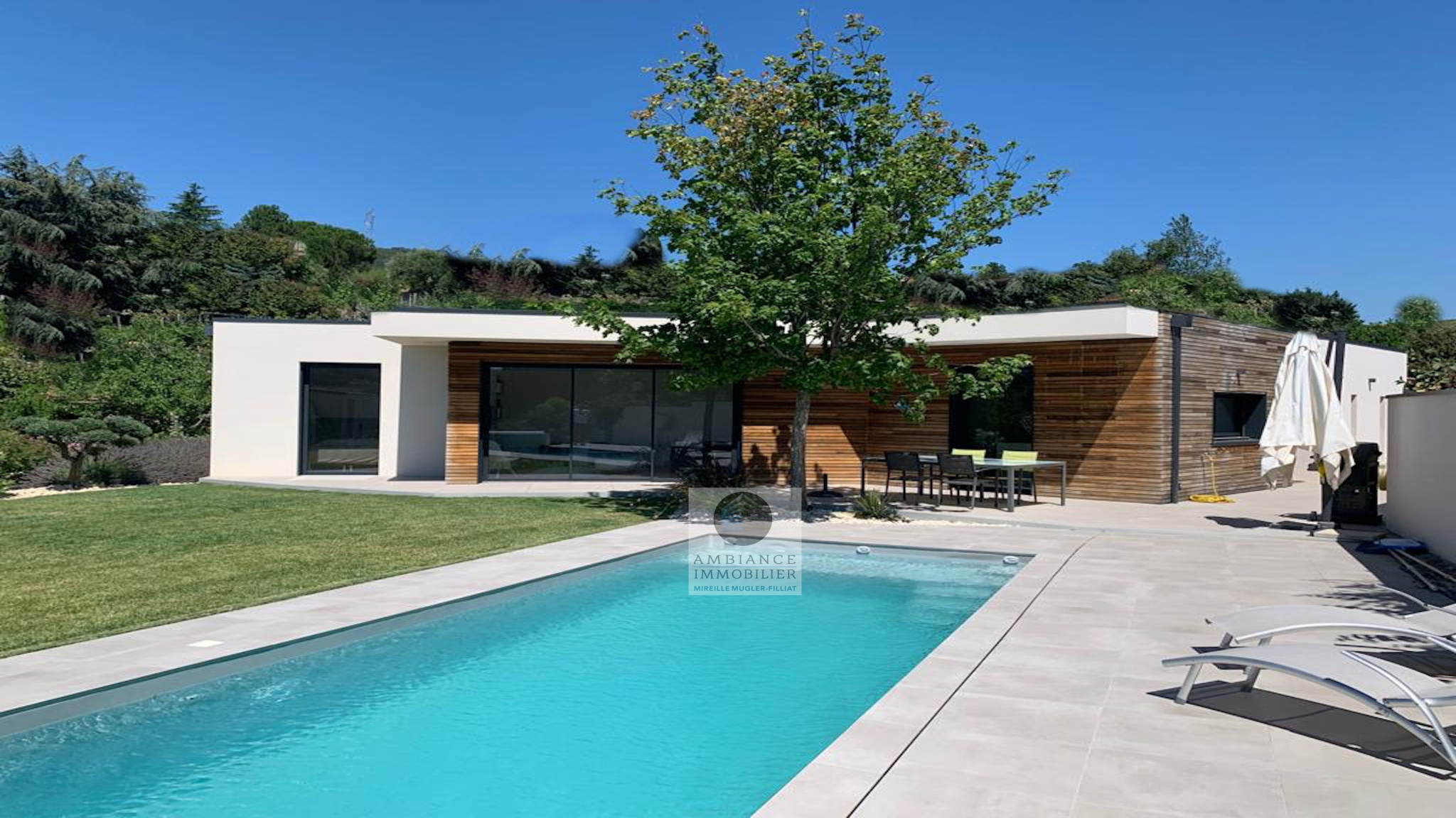 TOURNON Sud, en exclusivité, dans quartier recherché, le calme, une belle exposition, de beaux volumes, une conception agréable pour cette maison d’architecte de 162m2. Salon-séjour avec cheminée de 38m2, de grandes baies vitrées pour profiter pleinement de la vue sur le jardin, cuisine intégrée, buanderie, un espace enfant avec 3 chambres et une salle de […]