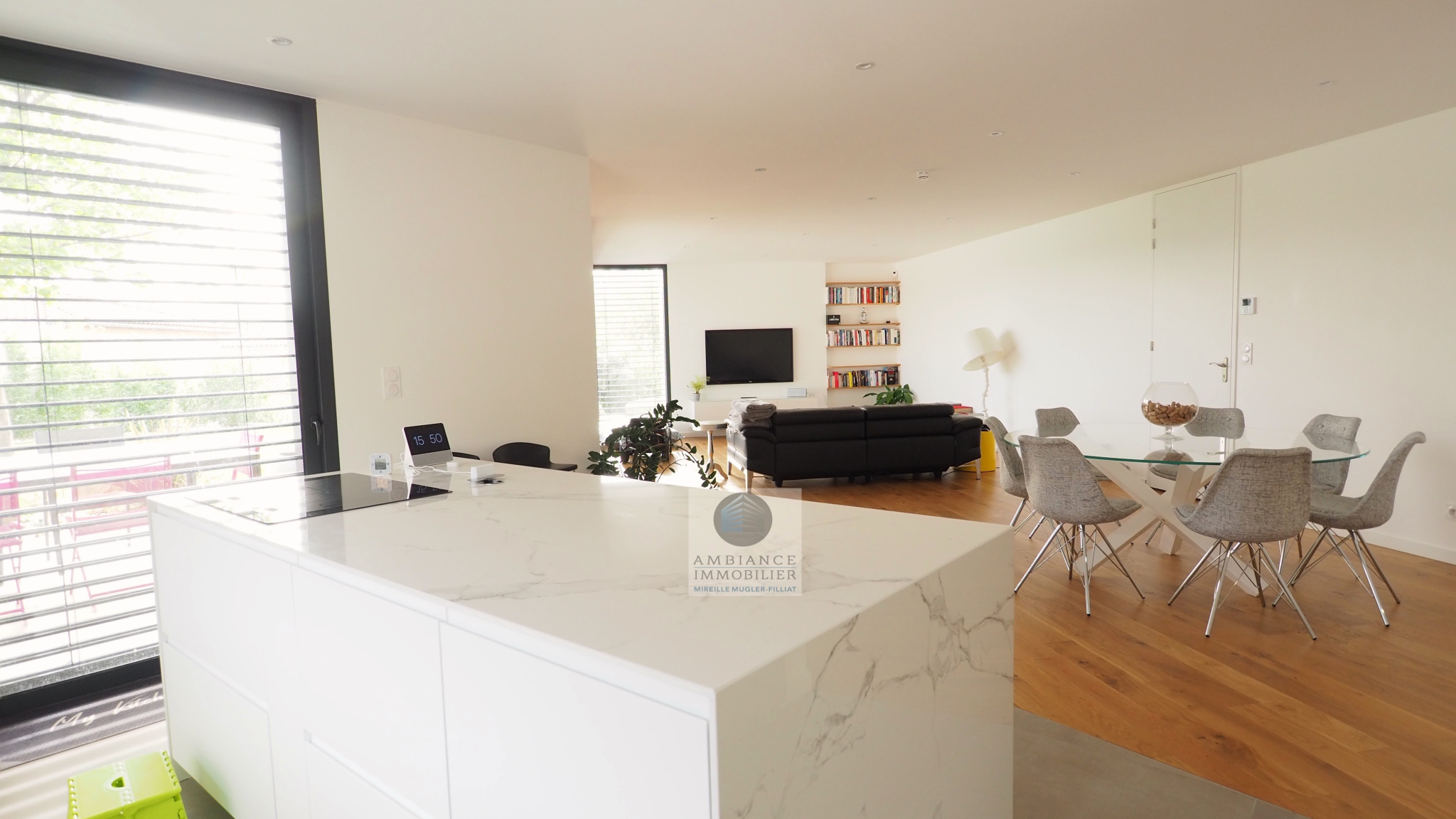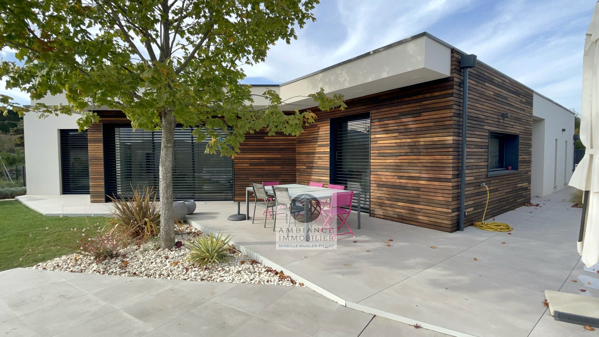 BOURG LES VALENCE dans quartier résidentiel, en exclusivité, le calme, la luminosité, une architecture contemporaine avec de beaux volumes et de grandes baies vitrées offrant de belles perspectives sur le jardin pour cette maison de 182m2 avec 91m2 de pièces de vie : salon-séjour cuisine intégrée de 55m2, salon TV de 36m2, bureau ou chambre […]