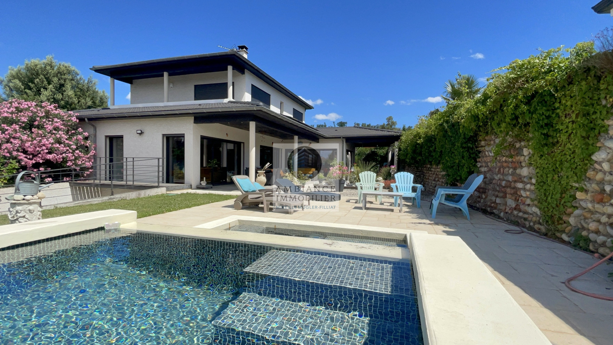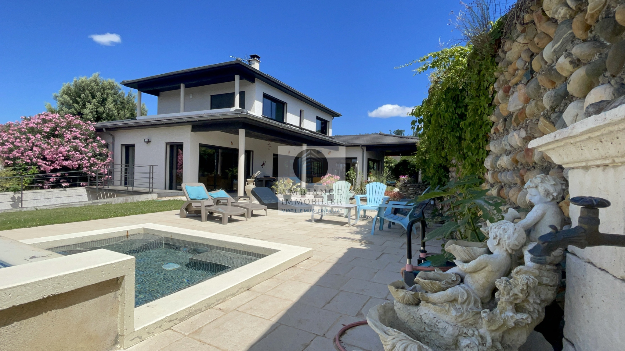 GUILHERAND-GRANGES, en exclusivité,dans quartier résidentiel, la proximité des bords du Rhône et du centre-ville, une rénovation totale dans un esprit contemporain et une ambiance chaleureuse : poutres apparentes, sols en parquet massif….La luminosité, de beaux volumes et une conception originale pour cette maison de 168m2 sur une parcelle de 748m2 avec piscine.Séjour-salon-cuisine intégrée de 59m2 […]