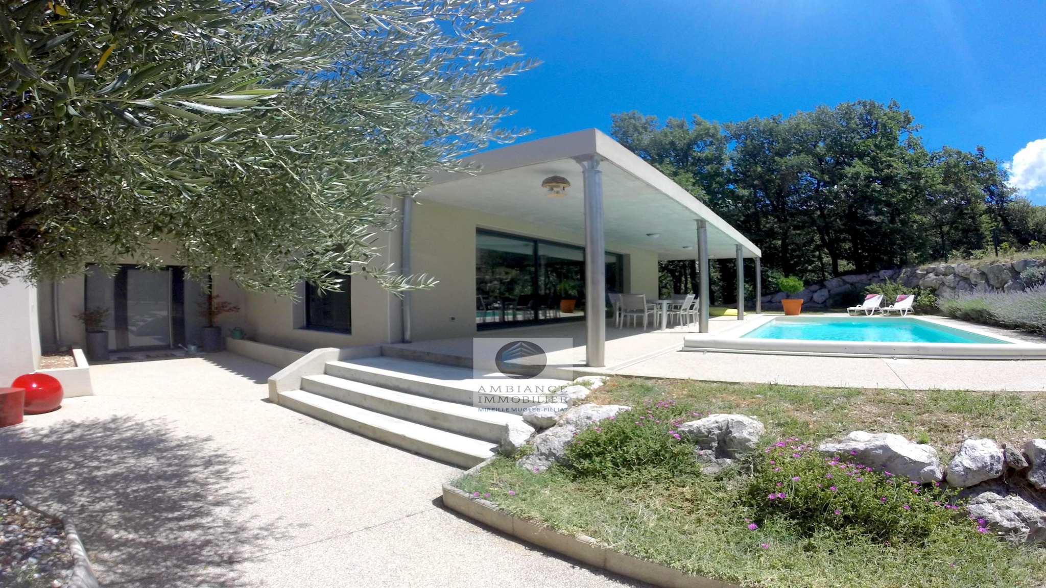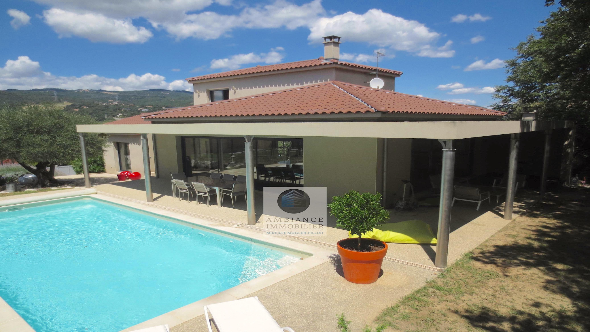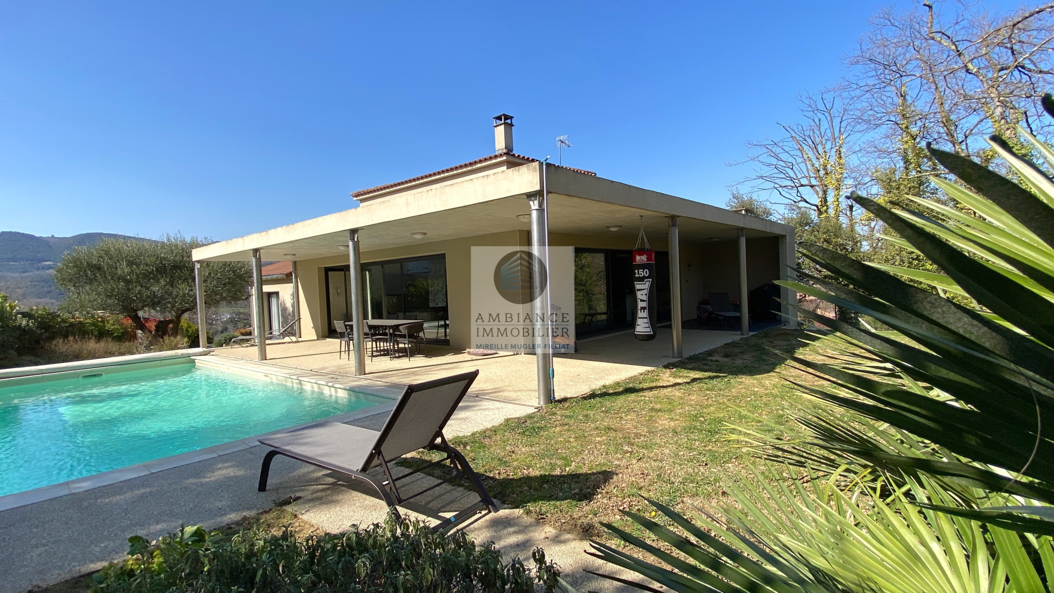 SAINT-PERAY en exclusivité dans quartier résidentiel, le calme, la luminosité, une conception originale et contemporaine, une décoration dans un esprit chic et chaleureux pour cette maison d’architecte de 2005 de 195m2. L’alliance du béton brut et du verre avec 2 façades en baies vitrées, une belle charpente apparente, de beaux volumes, une pièce de vie […]