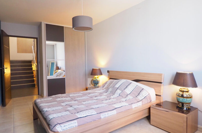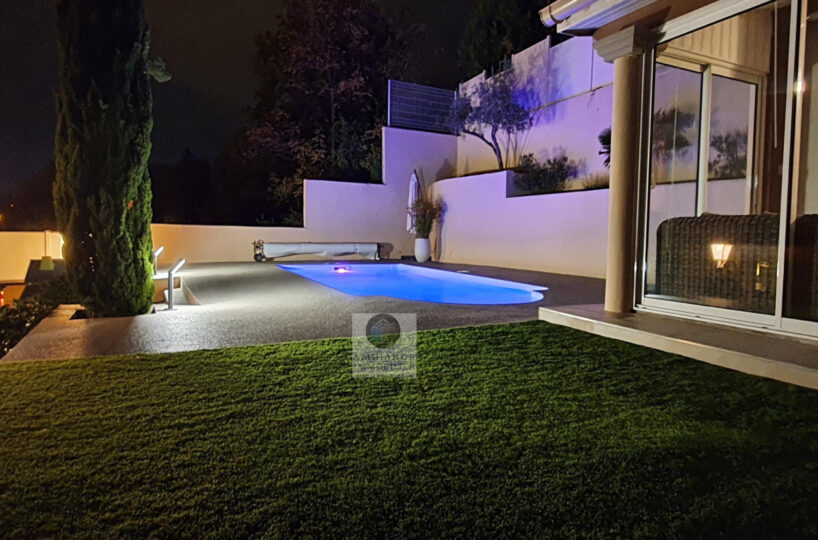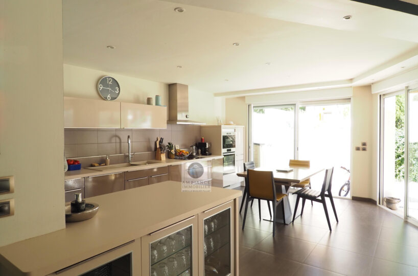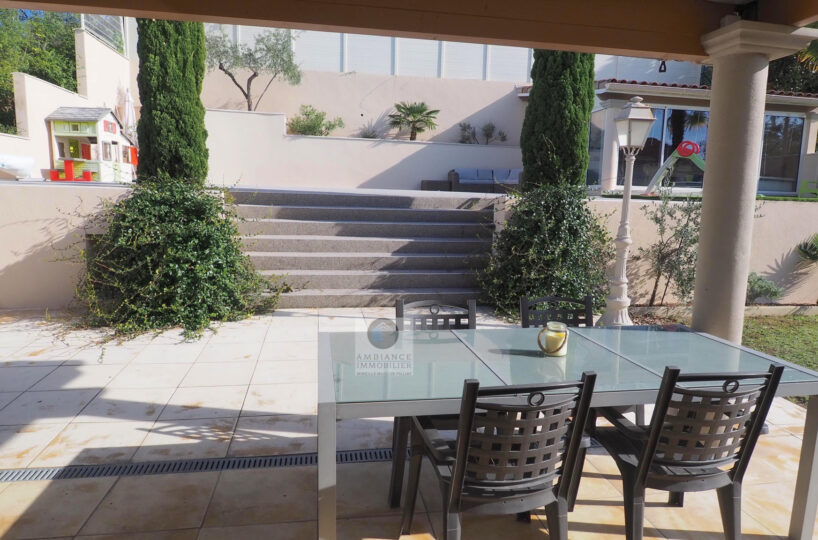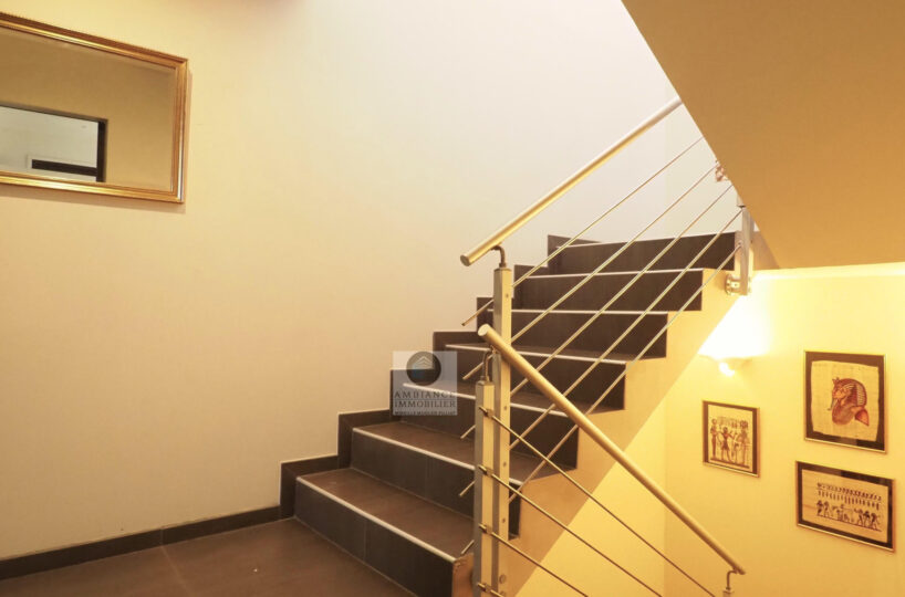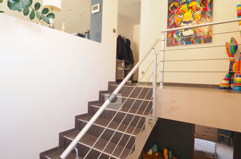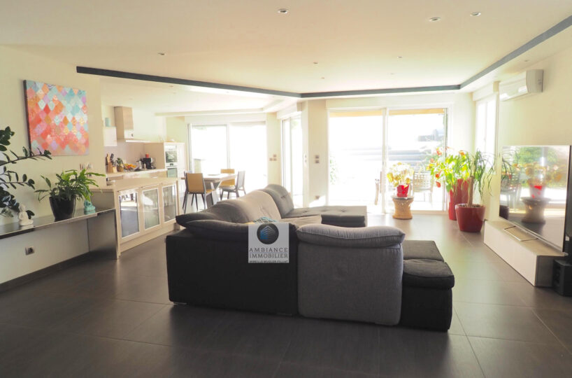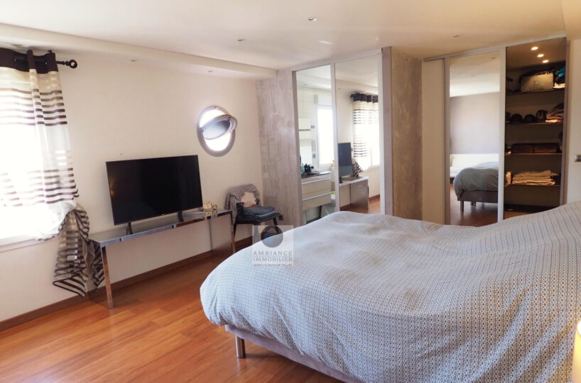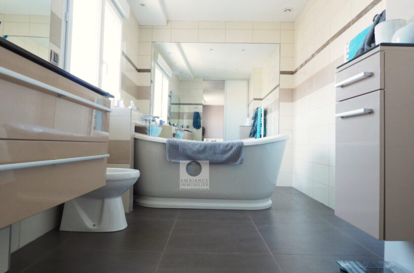 VALENCE, en exclusivité, dans quartier recherché, le calme, la luminosité, une conception atypique et de beaux volumes pour cette maison d’architecte de 221m2. Salon-séjour, cuisine intégrée de 70m2 avec de grandes baies vitrées offrant une belle perspective sur les terrasses et le jardin paysager, buanderie, 5 chambres dont 1 suite parentale de 33m2 avec dressing, salle de bains avec baignoire et vasque et 1 suite enfant de 20m2 avec dressing, salle d’eau avec douche et vasque, 1 salle d’eau, un espace bureau/salle de jeux. Chauffage par pompe à chaleur : plancher chauffant/rafraîchissant + climatisation dans la pièce de vie, huisseries en alu et pvc, volets électriques. Garage de 41m2 avec 2 portails motorisés, 1 cour fermée avec parking 1 VL. Un bel espace détente autour d’une piscine de 6m x 3,5m et un pool-house de 25m2 avec sanitaires. Construction de 2011 sur une parcelle de 503m2. DPE : B 81 – GES : A 3