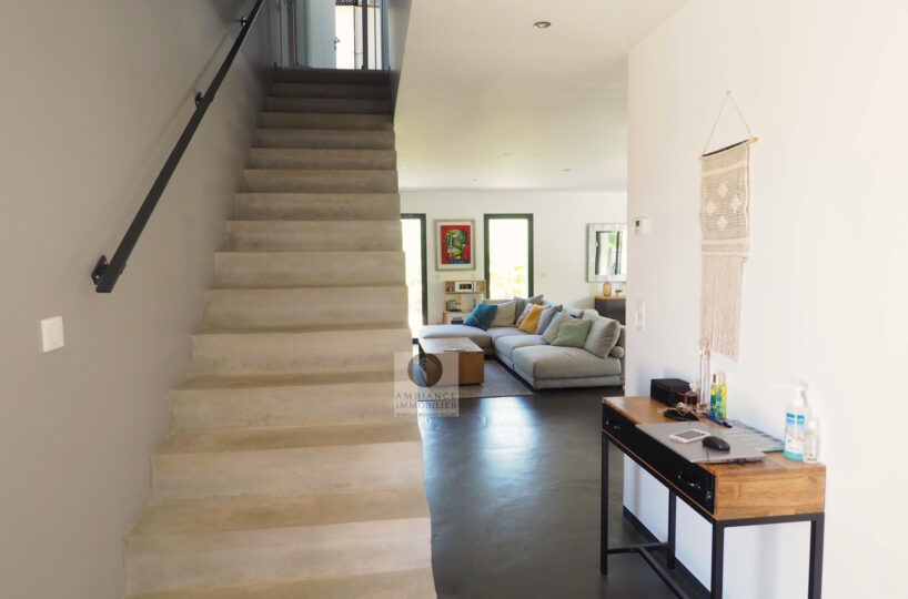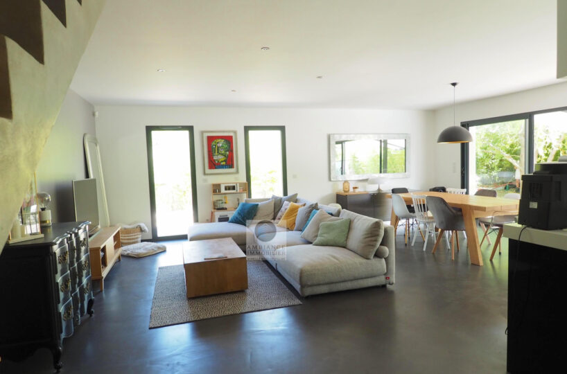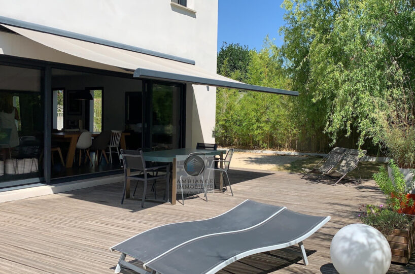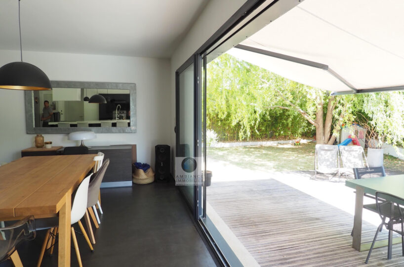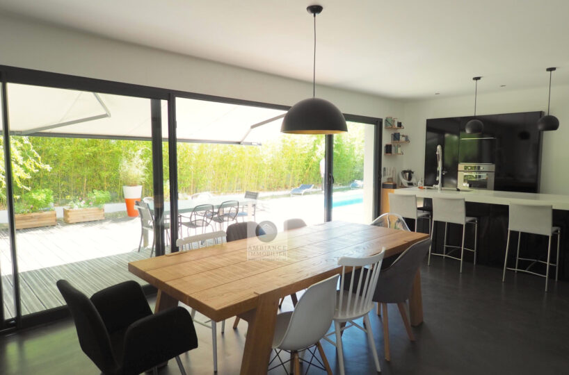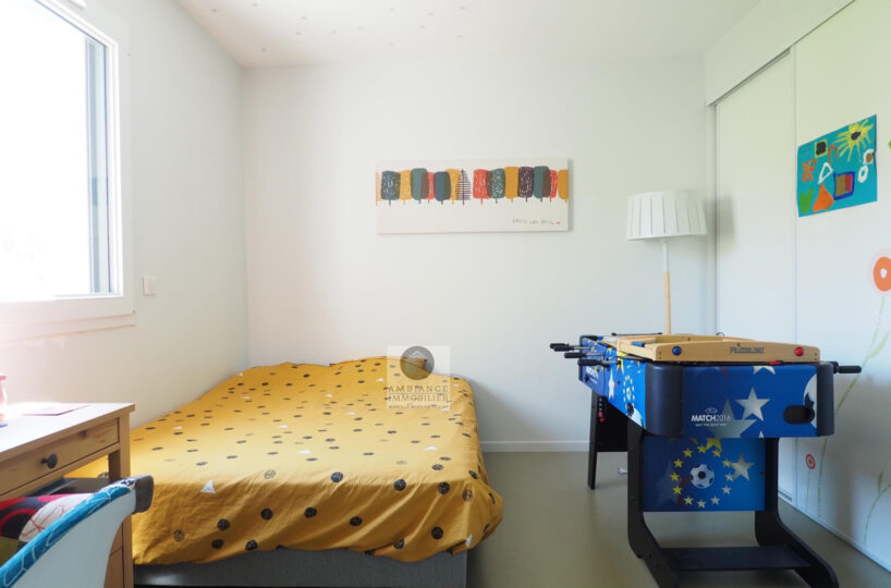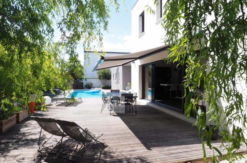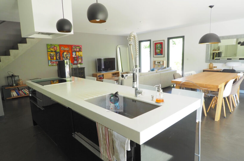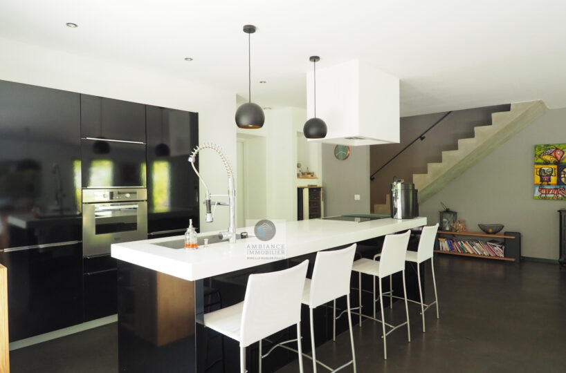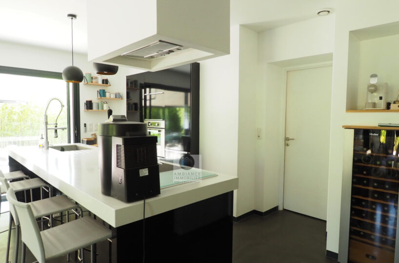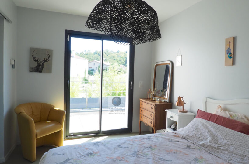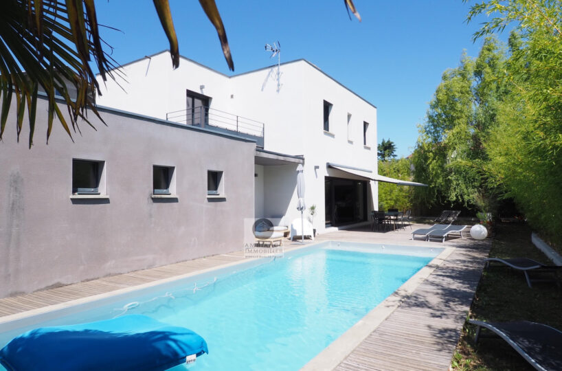 VALENCE dans quartier résidentiel, la luminosité, de beaux volumes, une conception agréable, un esprit contemporain et épuré pour cette maison d’architecte de 2010 de 137m2. Une pièce de vie de 52m2 : salon-séjour, cuisine intégrée Schmidt, une immense baie vitrée offrant une belle perspective sur le jardin, buanderie. Au 1er étage : 4 chambres dont 1 suite parentale de 20m2 ouvrant sur 1 terrasse, salle d’eau avec douche à l’italienne et vasque, dressing,1 salle de bains avec baignoire et vasque. Chauffage par pompe à chaleur : plancher chauffant/rafraîchissant, huisseries en alu, volets électriques. Alarme. Garage – parkings. Parcelle de 602m2 avec jardin paysager, une belle terrasse avec store motorisé, jeu de boules, piscine 11m x 3,60m sécurisée par volet immergé.