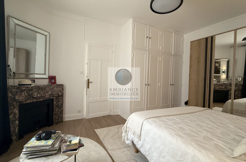 Un espace nuit : 1 chambre parentale de 19m2 avec cheminée décorative en marbre et placard, 1 chambre de 11m2 et un bureau/chambre d’amis de 7m2,1 salle d’eau avec vasque et douche à l’italienne.