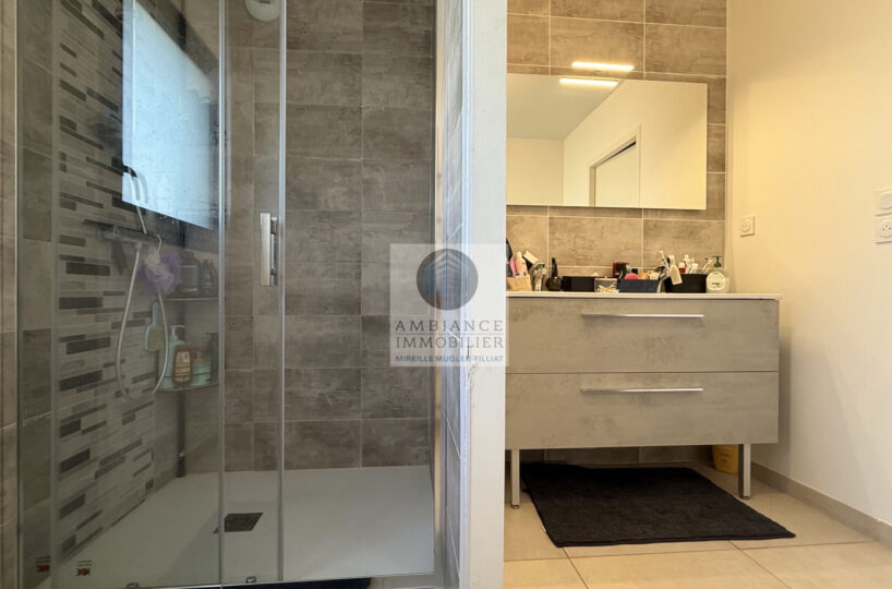 Le coin nuit séparé avec 3 chambres et une salle d’eau avec vasque et douche à l’italienne.