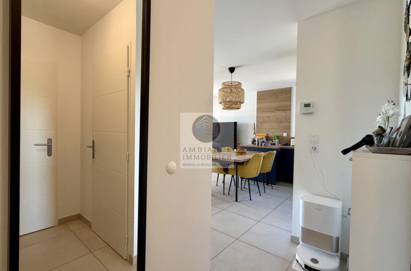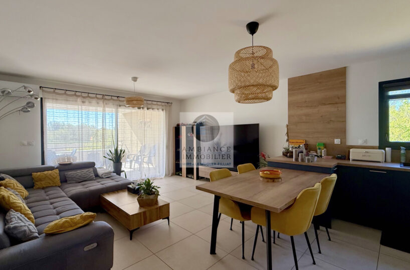 GUILHERAND-GRANGES au Sud, proche des bords du Rhône, dans une petite résidence de standing de 2023, la luminosité, une superbe vue et de belles prestations pour cet appartement F4/F5 de 91m2 avec une magnifique terrasse de 24m2 offrant une belle perspective sur la campagne.