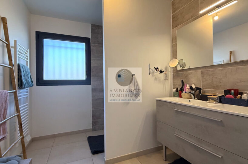 Chauffage au gaz par le sol et climatisation réversible dans  la pièce de vie – huisseries en alu et pvc – volets électriques avec centralisation.