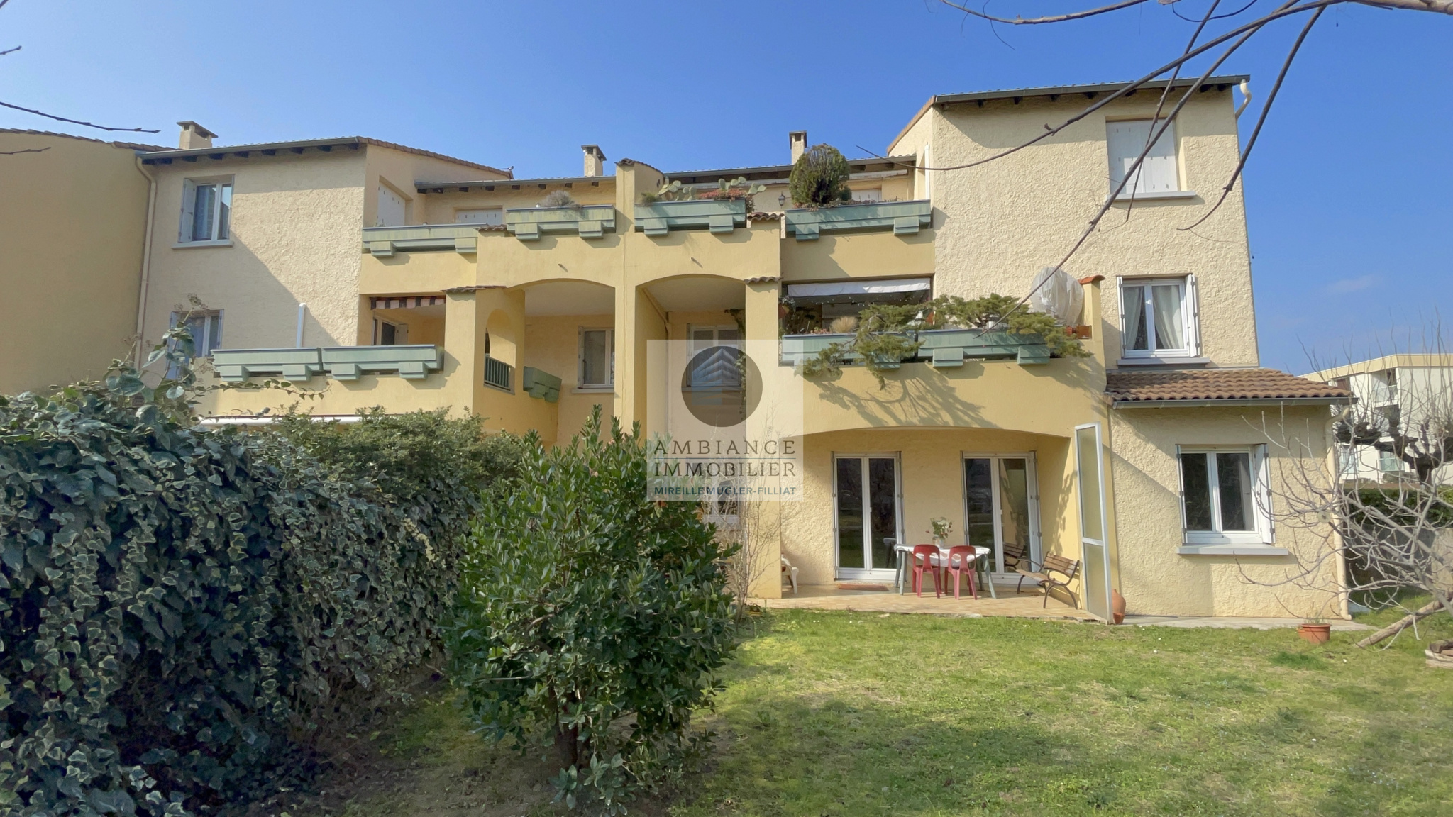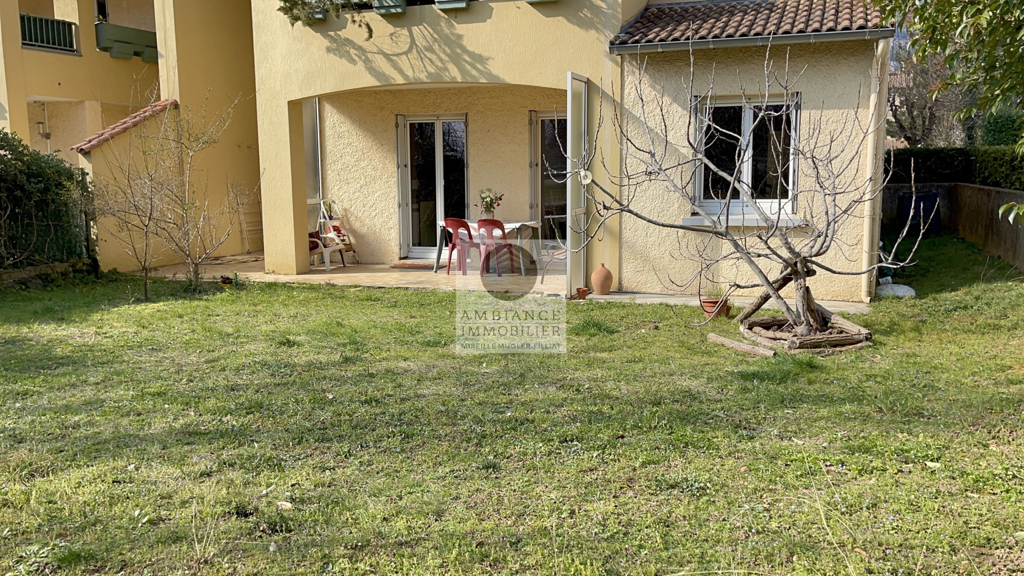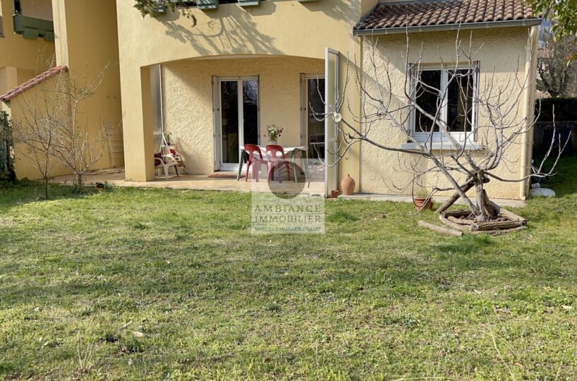 GUILHERAND-GRANGES, en exclusivité, dans quartier résidentiel, le centre-ville et le calme, un bel environnement verdoyant, la luminosité pour ce F4 de 85m2 avec terrasse et jardin privatif de 150m2 environ au sein d’une résidence de bon standing. Une conception originale avec une superbe pièce de vie de 49m2 exposée est/ouest : séjour-salon de 38m2, cuisine aménagée à 1/2 ouverte de 11m2, 2 chambres, salle de bains.