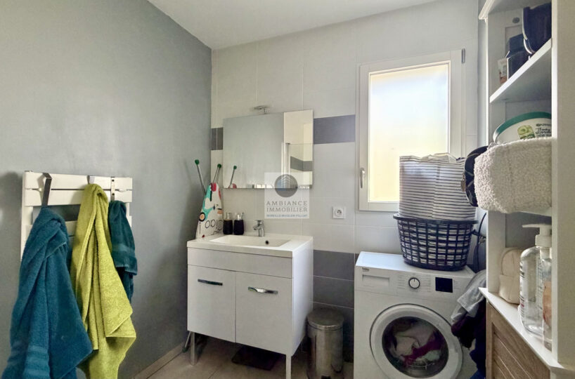 L’espace nuit : 2 chambres avec placards, salle d’eau avec vasque et douche à l’italienne.