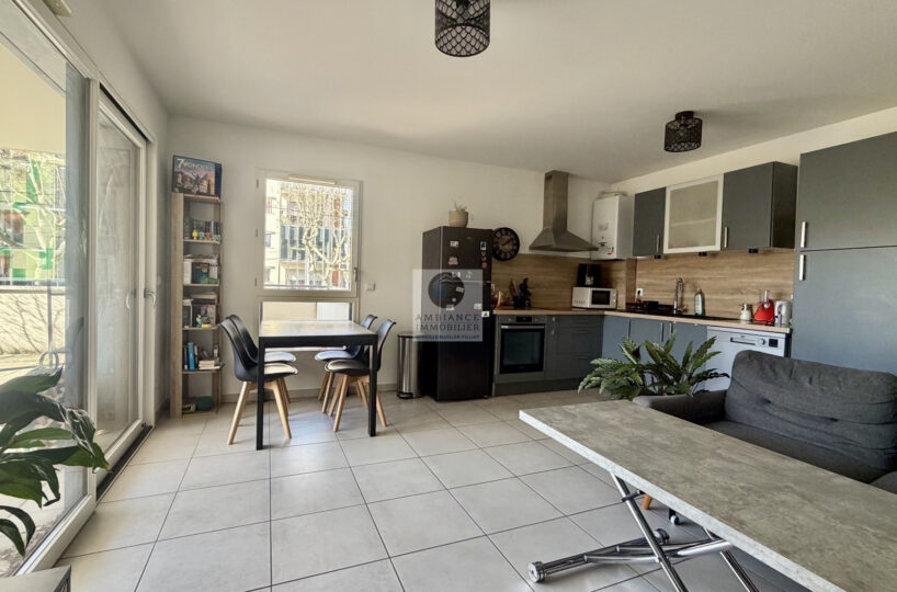 VALENCE, la proximité du centre-ville et des universités, dans une petite résidence de standing de 2017, la luminosité et une conception agréable pour cet appartement de 64m2 avec une superbe terrasse couverte de 20m2.