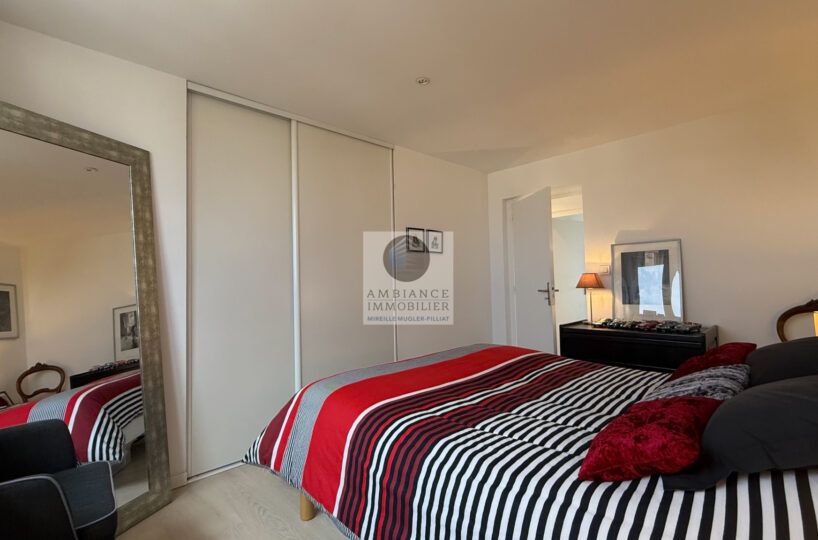 Une pièce de vie de 35m2 avec une double exposition : séjour-salon avec balcon au sud, cuisine intégrée, cellier/buanderie (non comptabilisé), 2 chambres spacieuses, salle d’eau avec vasque et douche.