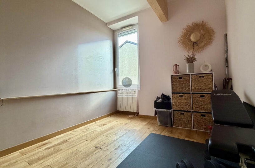 Un espace nuit avec une chambre parentale de 20m2 avec dressing aménagé et une petite chambre d’enfant ou bureau.