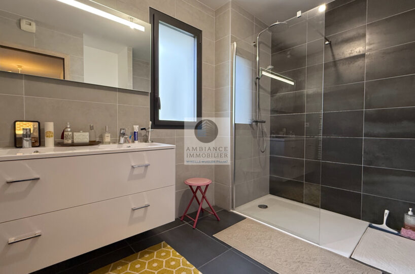 Un espace nuit avec 2 chambres, une salle d’eau avec vasque et douche à l’italienne.