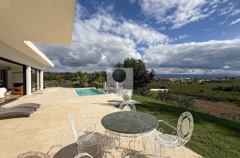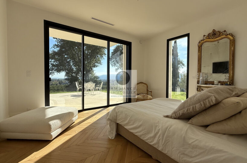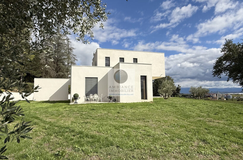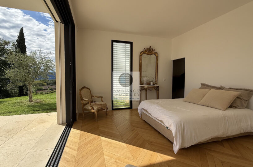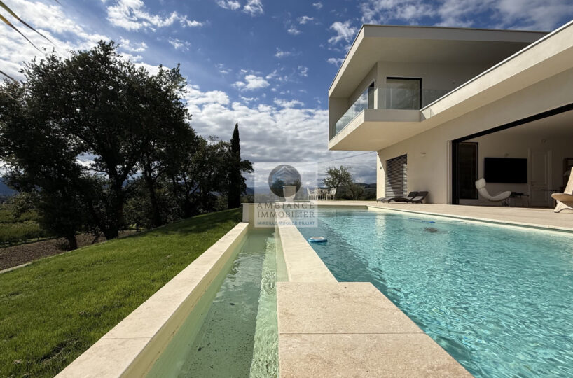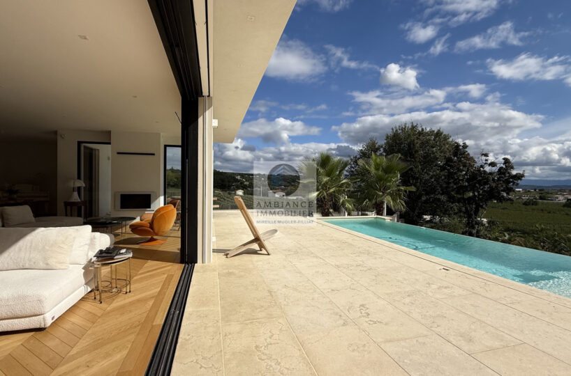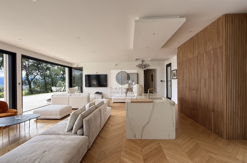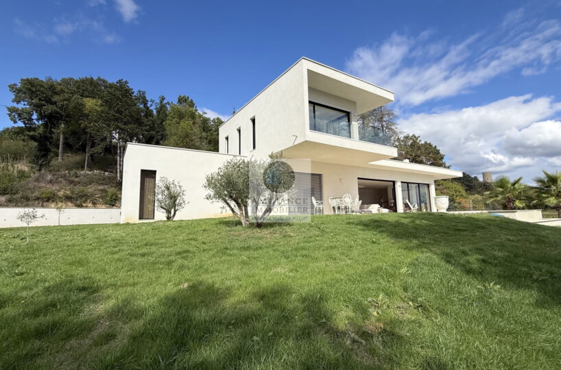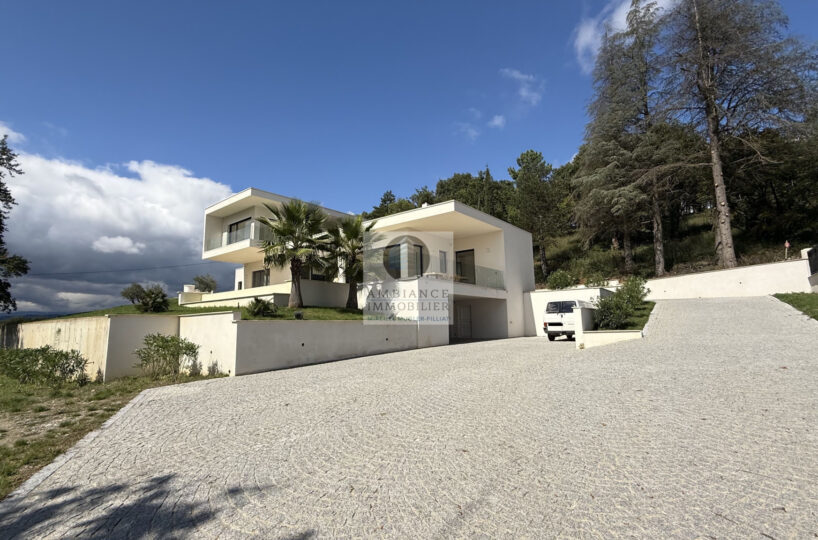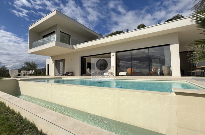 L’alliance parfaite d’une maison d’architecte de 248m2 aux lignes épurées et aux volumes généreux avec piscine à débordement sur une parcelle de 7 012m2 dont 4 000m2 boisée.