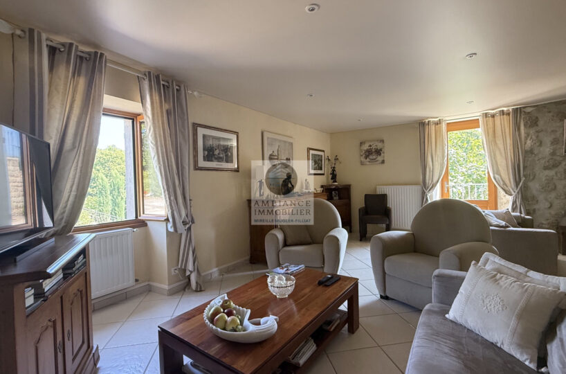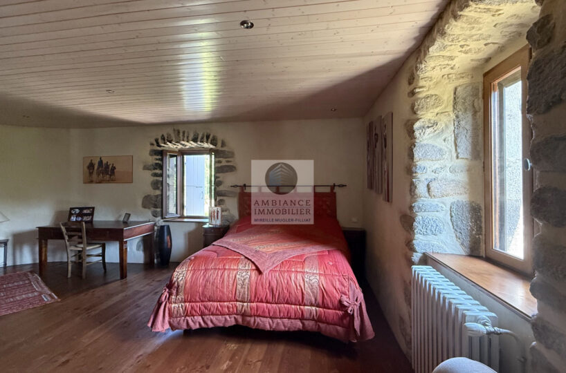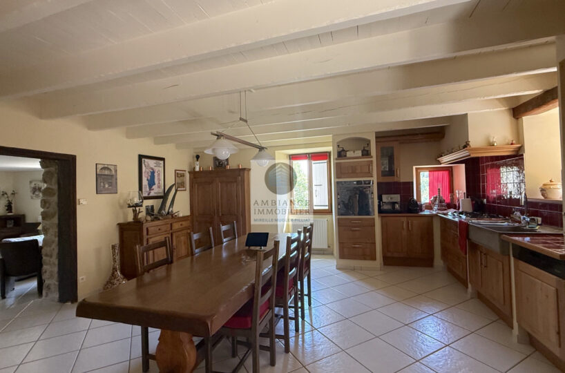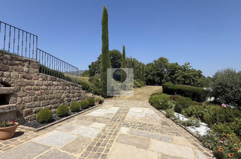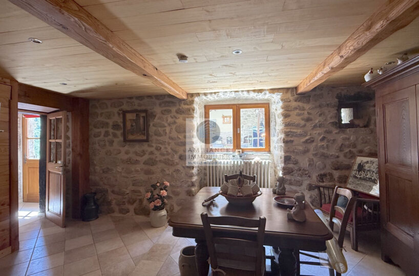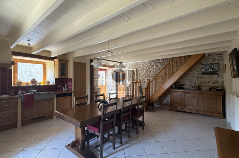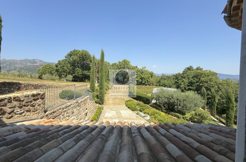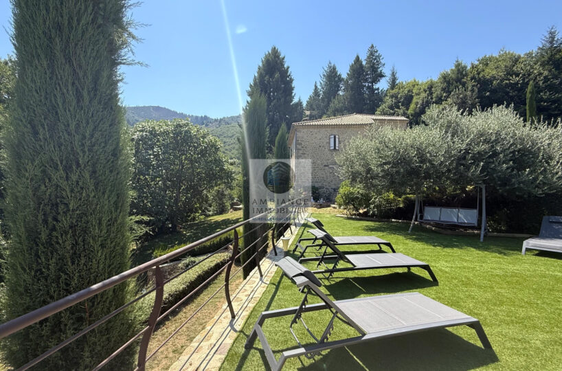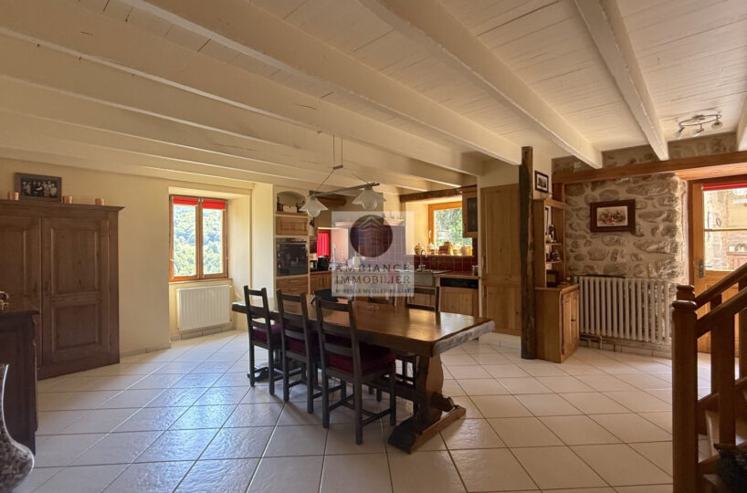 JAUJAC, en co-exclusivité, une vue exceptionnelle sur les monts d’Ardèche, une position dominante et la proximité d’un charmant village pour cette bâtisse en pierres de 218m2, typique des maisons ardéchoises sur une parcelle de 20 356m2 plantée de châtaigniers, d’oliviers, un magnifique verger et un potager.