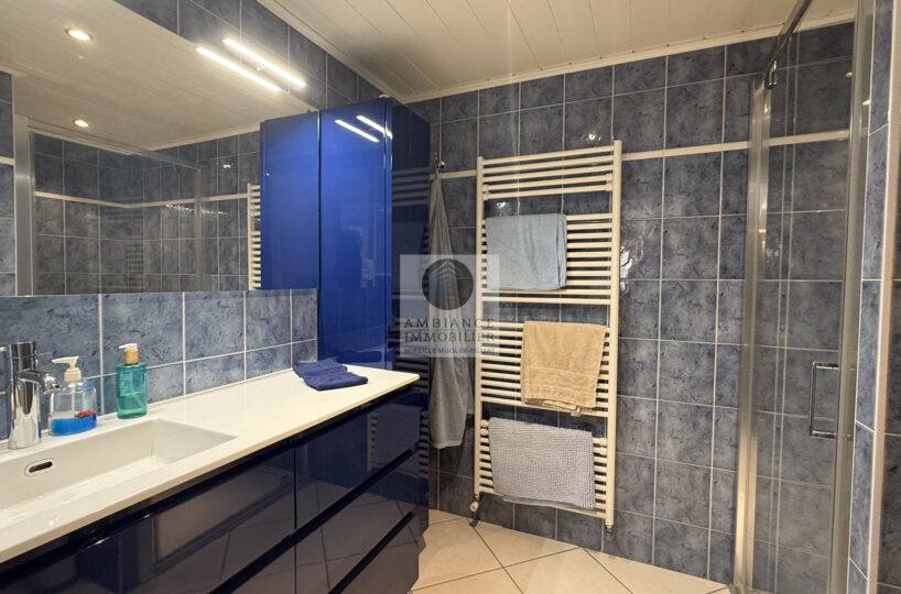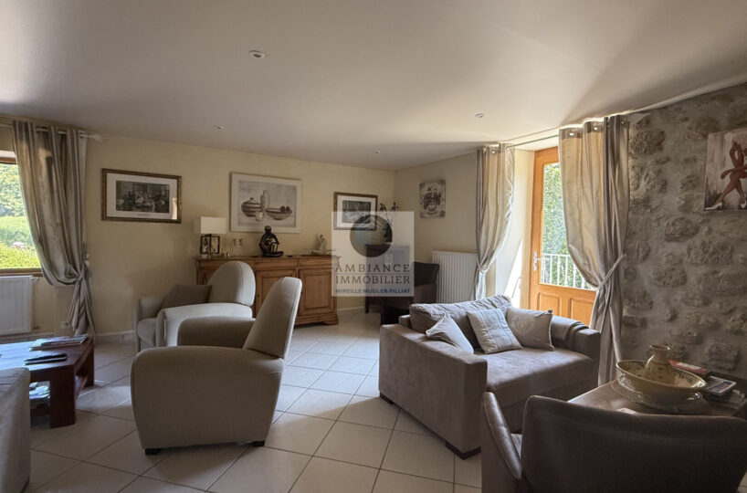 Une cuisine dînatoire de 34m2 totalement intégrée, un salon de 31m2 avec cheminée à foyer fermé, un séjour, une buanderie, un cellier et une salle d’eau.