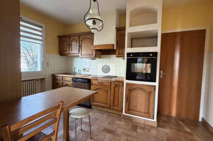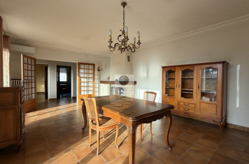 Un hall d’entrée desservant un salon-séjour de 27m2 exposé sud/ouest avec une cheminée à foyer fermé et accès à une grande terrasse, une cuisine intégrée de 11m2 prolongée par une salle à manger de 13m2 permettant d’imaginer une spacieuse cuisine dînatoire conviviale de 24m2.