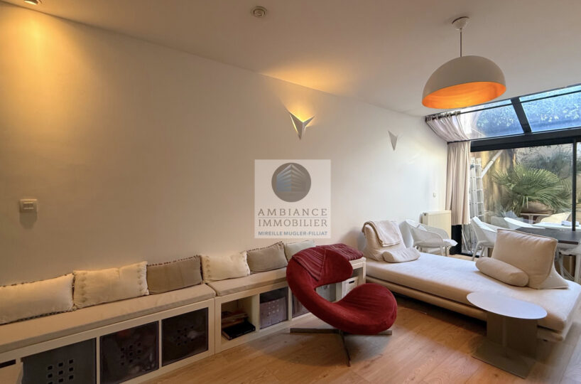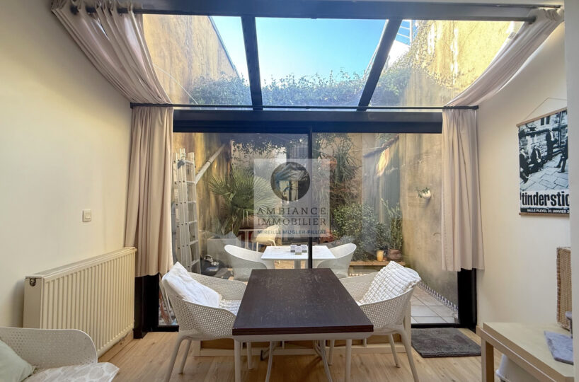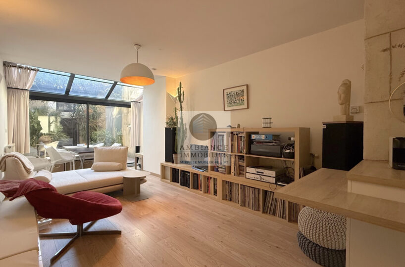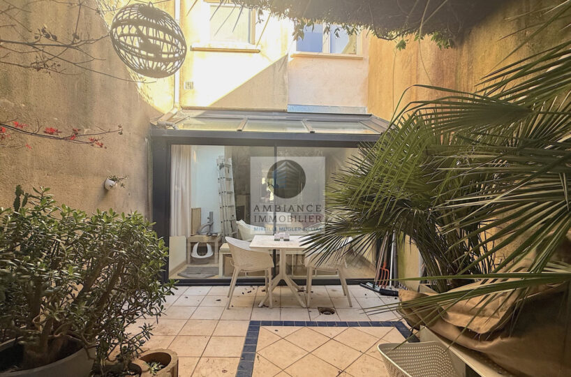 VALENCE, la proximité du Centre-ville et de la gare, une conception atypique pour cette charmante maison de ville de 87m2 et 81m2 loi carrez et un agréable patio avec de belles essences méditerranéennes.