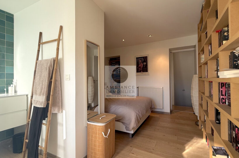 Au 1er étage, un espace parental de 29m2 : une chambre, une salle d’eau avec douche à l’italienne et vasque, un bureau/dressing de 9m2.