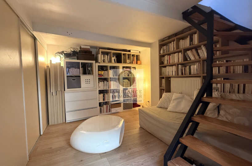Au fond du patio, une suite pour les enfants ou les amis avec un petit salon et à l’étage une chambre avec salle d’eau.
