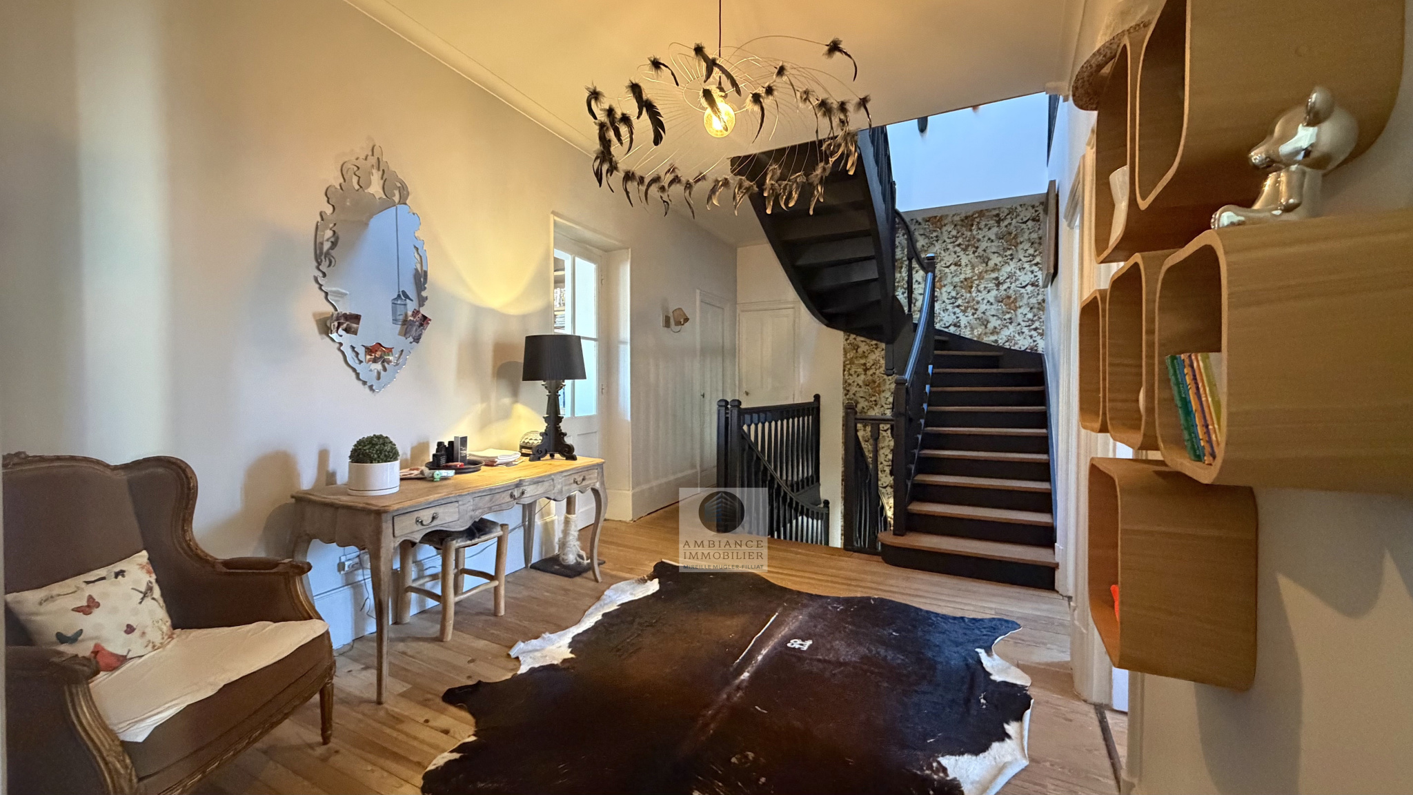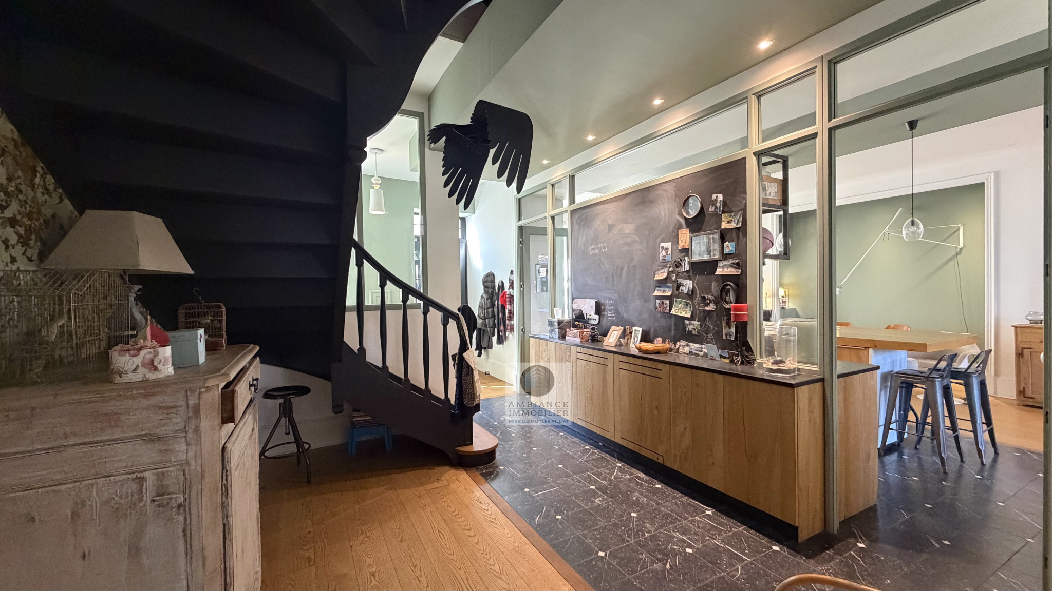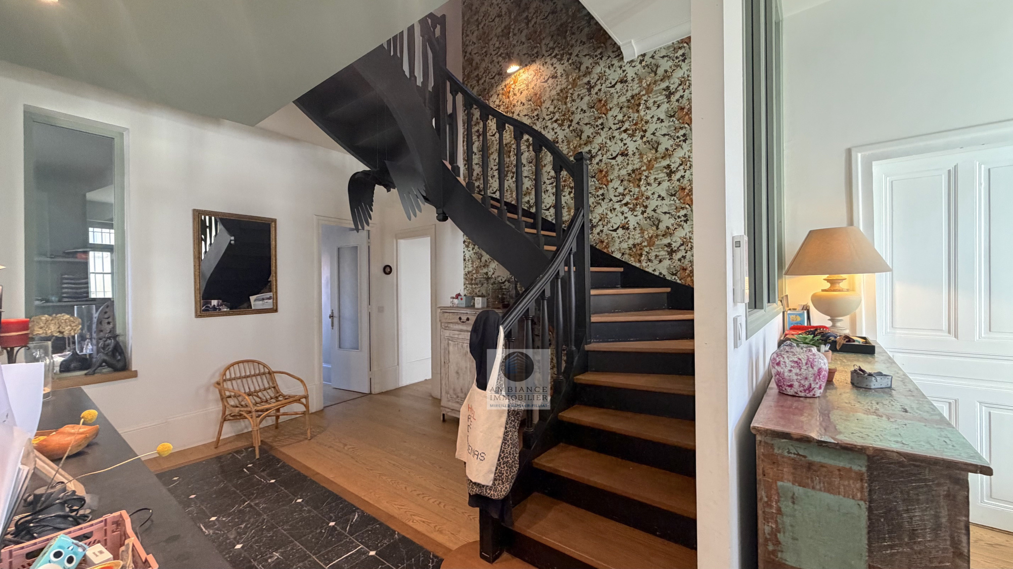 Le caractère authentique des lieux préservé et de superbes volumes : beaux parquets, boiseries, cheminée, bel escalier en bois, sols en marbre…