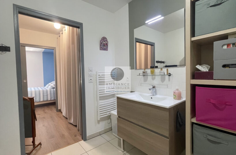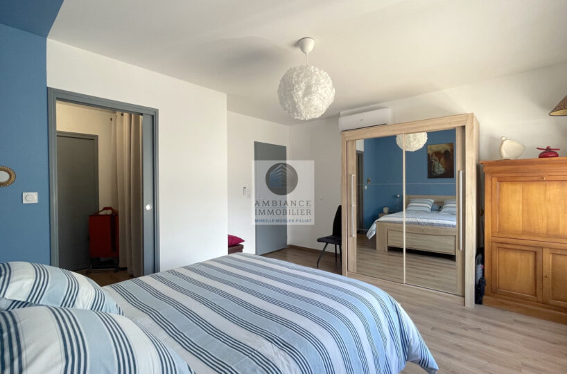 Un espace nuit : 2 chambres dont 1 suite parentale de 27m2 avec dressing et salle d’eau : douche à l’italienne et vasque, 1 suite amis de 16m2 avec salle d’eau, une grande buanderie/cellier.