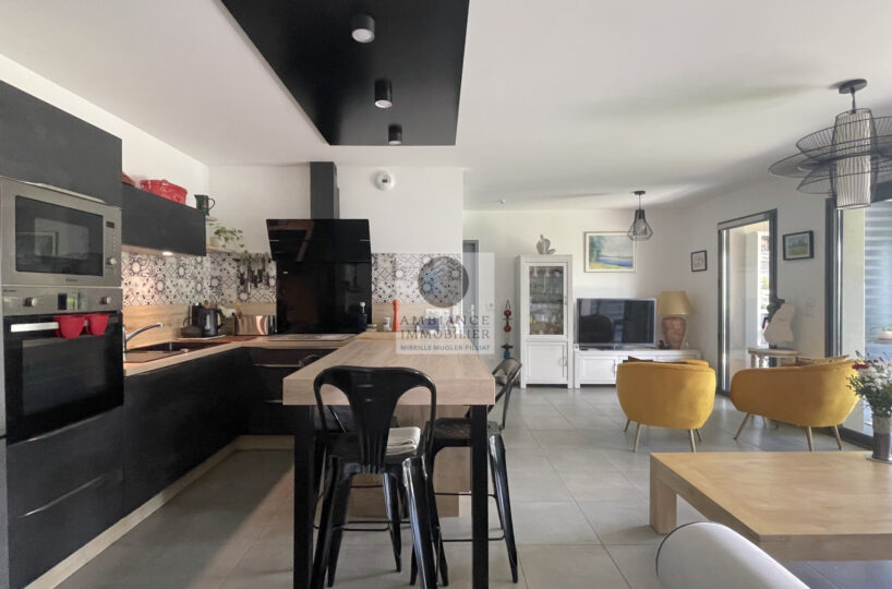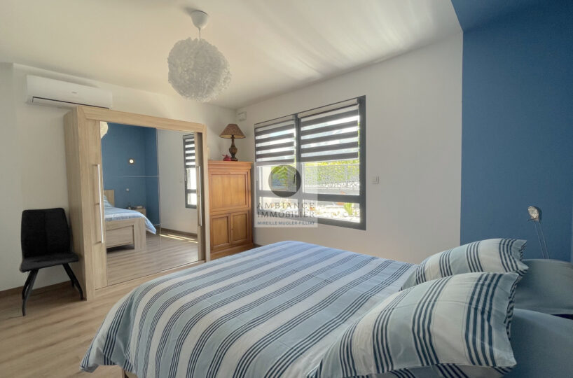 Chauffage par le sol au gaz + climatisation réversible, huisseries en alu avec volets électriques.