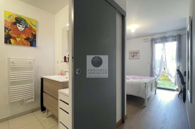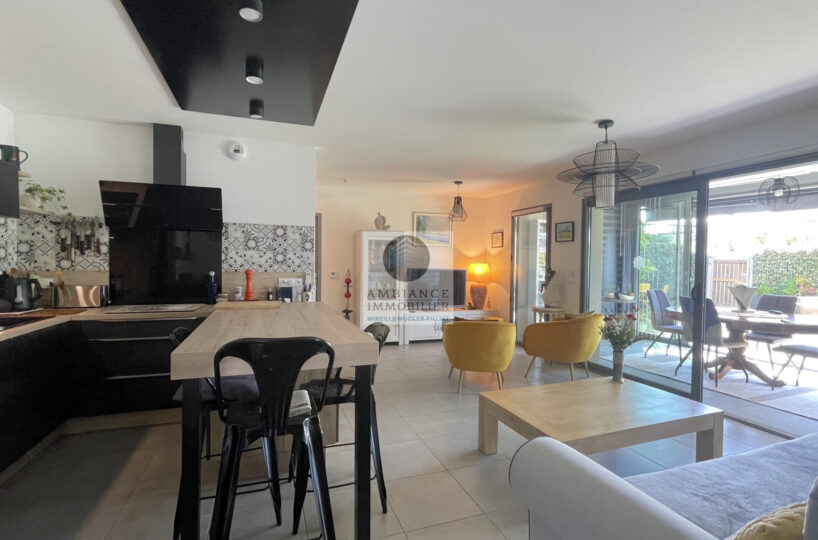 VALENCE, en exclusivité, dans petite résidence de standing de 2019 sécurisée, une ambiance contemporaine et chaleureuse, la luminosité, de belles prestations et une conception agréable pour cet appartement F4 de 103m2 avec de grandes baies vitrées pour accéder à un jardin privatif de 60m2 joliment paysager.