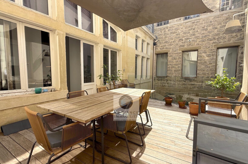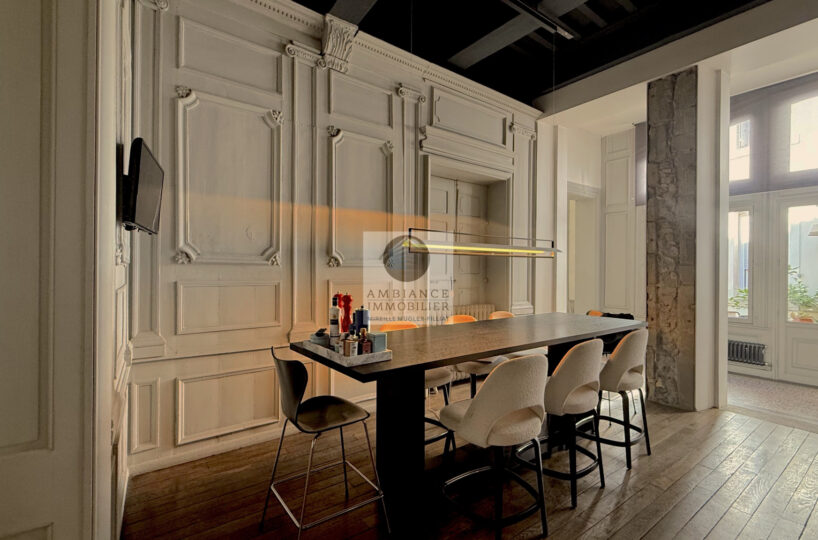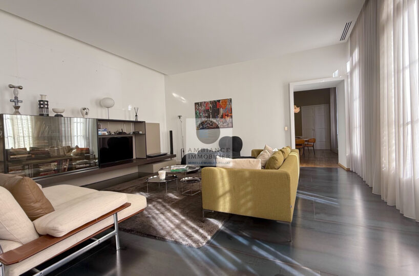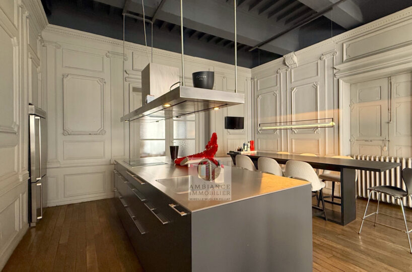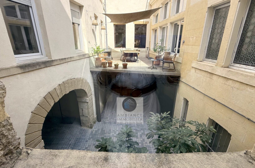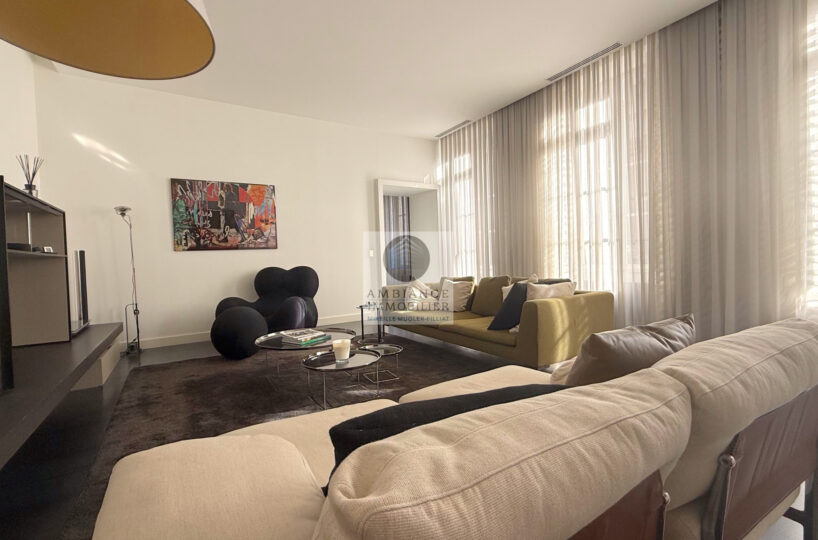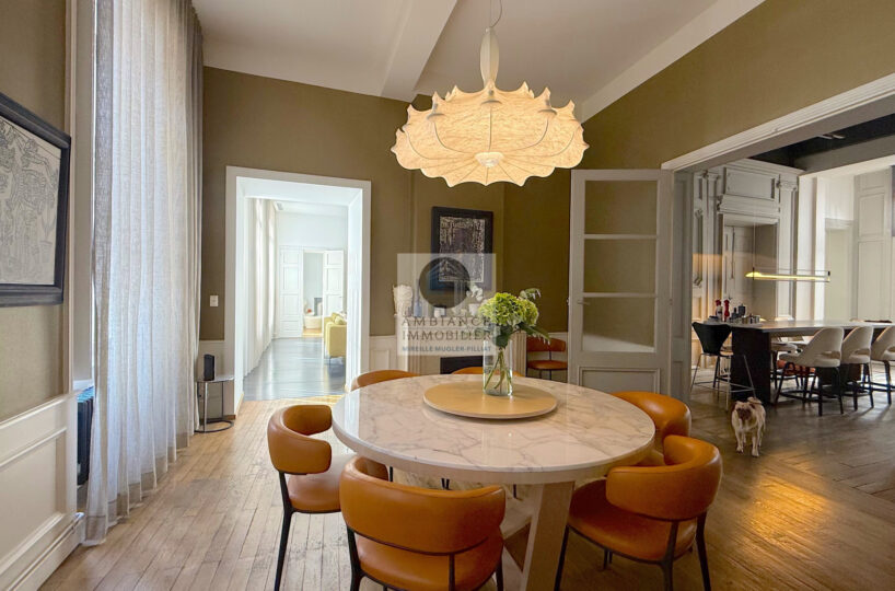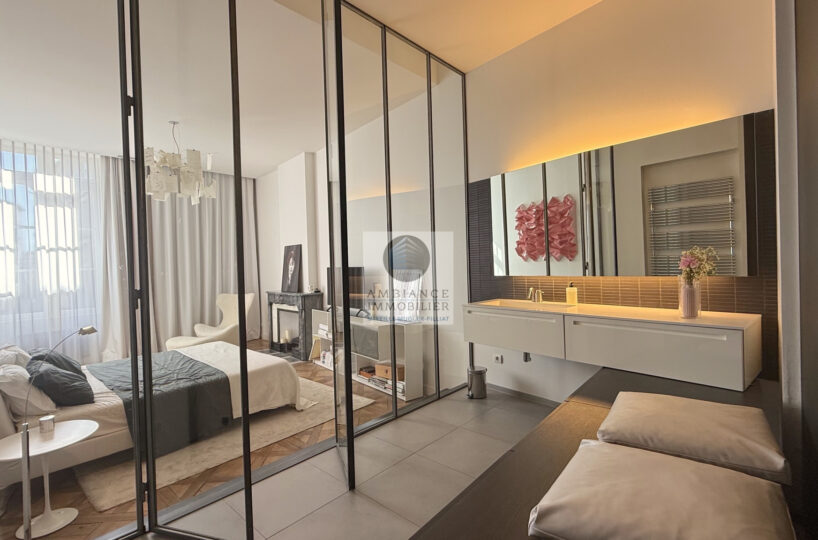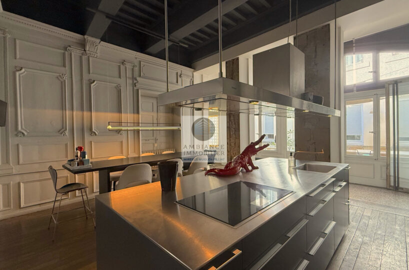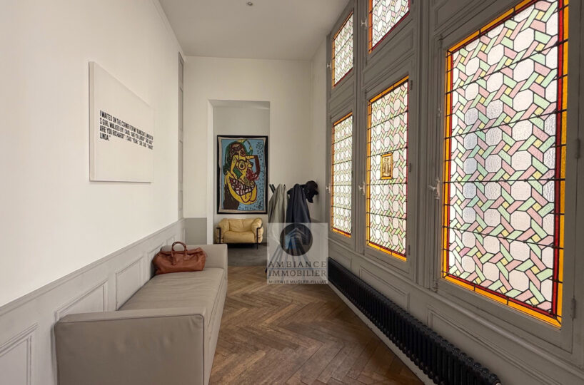 VALENCE centre historique dans un superbe hôtel particulier, de beaux volumes, l’alliance réussie d’une rénovation contemporaine avec le caractère authentique préservé pour cet appartement de 358m2 avec terrasse et garage.