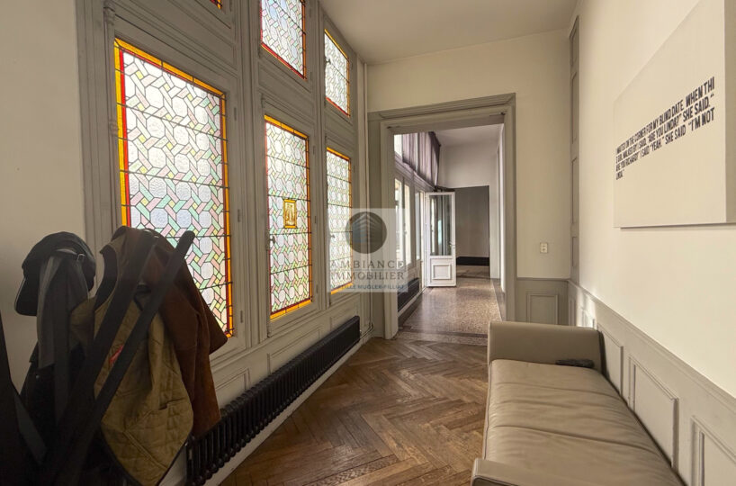 De magnifiques vitraux, plafonds à la française, boiseries murales, cheminées en marbre, sols en terrazzo, parquet et métal.