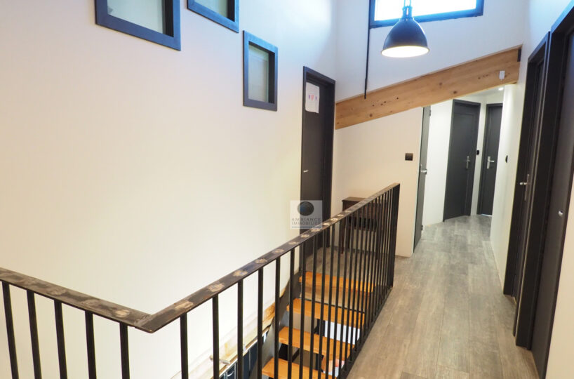 VALENCE SUD dans une zone artisanale dynamique, une architecture originale pour ce local professionnel de 576m2 : une partie du bâtiment en atelier/stockage de 252m2 avec porte sectionnelle, sanitaires, bureau et une partie bureau/habitation de 323m2 avec un espace détente de 80m2 : une pièce de vie cuisine/séjour/salon avec poêle à bois et climatisation réversible, accès à une terrasse de 30m2 offrant une belle perspective sur un jardin, salle de sport. Au 1er étage : 7 bureaux indépendants pouvant être modulables en open space, sanitaires. Parcelle de terrain de 2 600m2 entièrement clôturée avec un potentiel de construction pour un agrandissement ou un bâtiment indépendant sur 1 000m2. Parkings. Construction en 2008 et extension en 2017. Un bâtiment idéal pour de beaux projets.