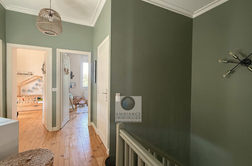 Le 1er étage desservi par un bel escalier en bois : 3 chambres dont 1 chambre parentale avec placard/dressing, 1 salle de bains : vasque et baignoire.