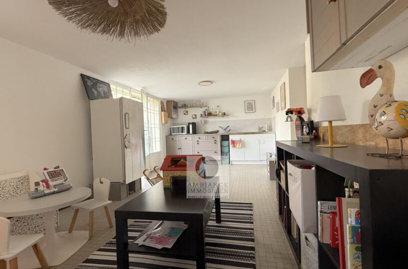 Une cuisine d’été avec salle de jeux de 20m2, un accès à une terrasse et au jardin.