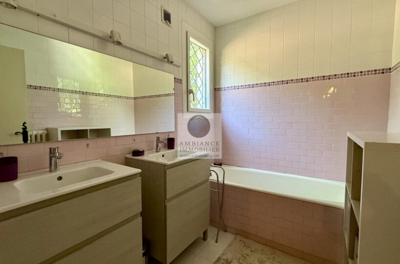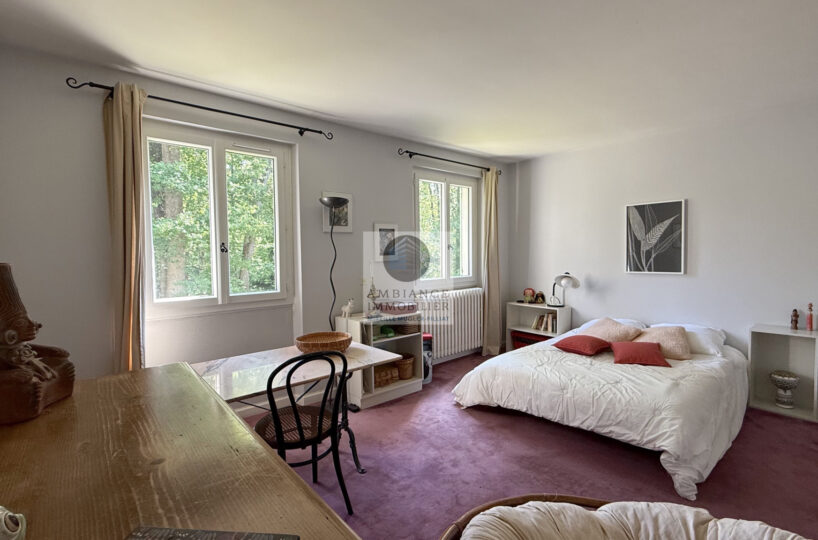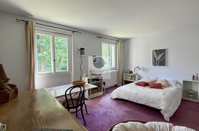Au 1/2 étage : 1 salle de bains avec baignoire et 2 vasques, 1 salle d’eau et 5 chambres dont 1 suite parentale de 20m2 avec salle de bains.