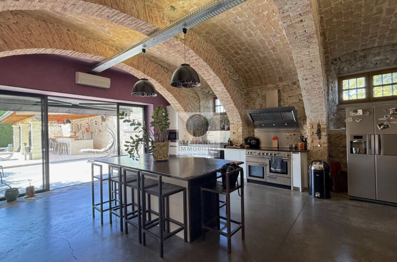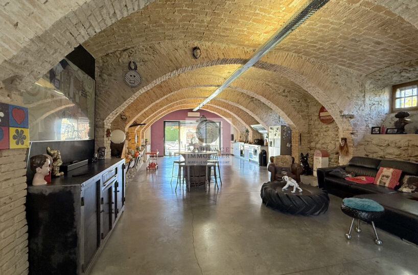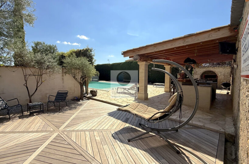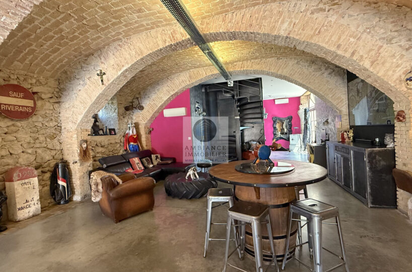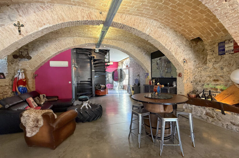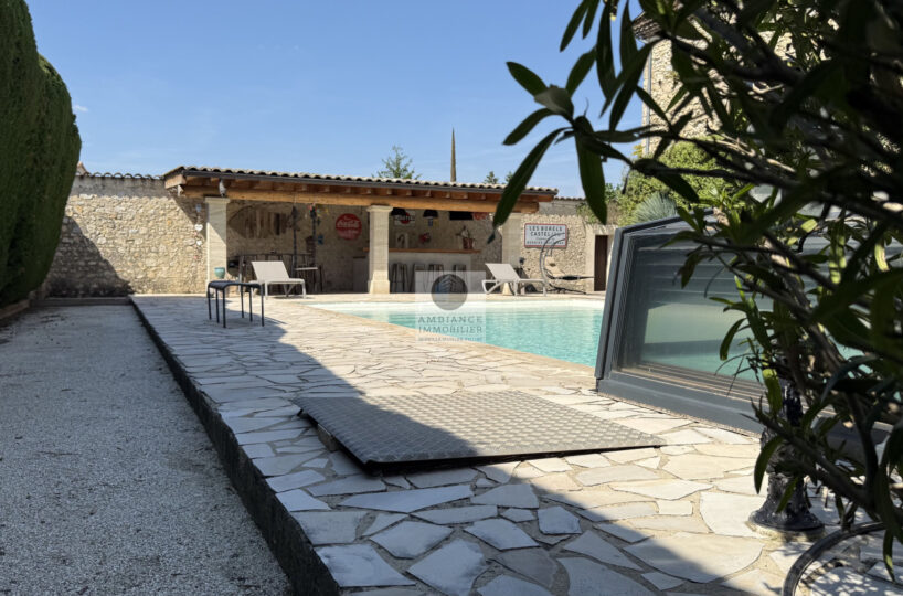 LIVRON SUR DROME, la proximité du centre-ville et le calme, un cadre de vie atypique pour cet appartement/maison de 188m2 avec un superbe espace détente privatif : piscine et terrasses.
