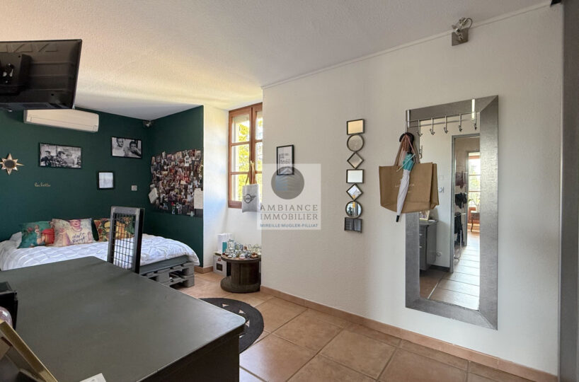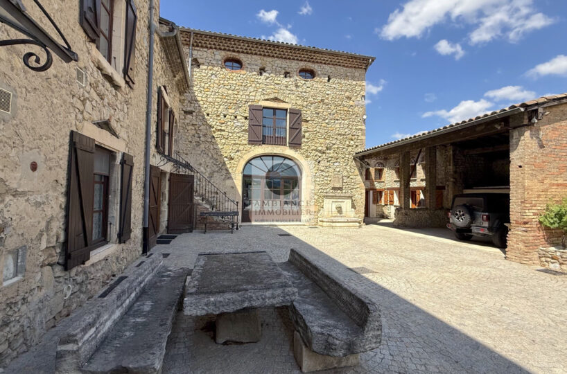Une ancienne magnanerie rénovée et divisée en 6 appartements sur une parcelle de 2 926m2 : un jardin partagé avec des arbres fruitiers et une superbe cour pavée pour le stationnement, fermée par un grand portail en ferronnerie.