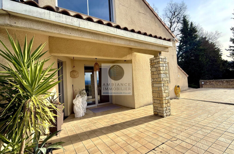 LORIOL-SUR-DROME dans quartier résidentiel, une position dominante avec une vue dégagée sur les Monts d’Ardèche, le calme et la luminosité pour cette maison de 169m2 sur une parcelle de 1 549m2.