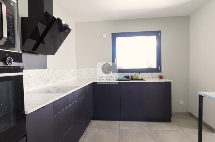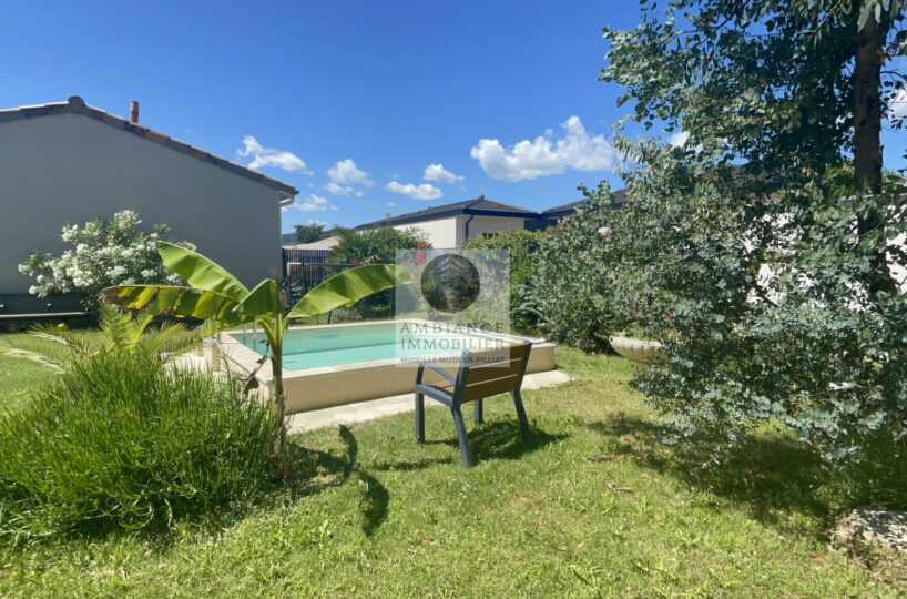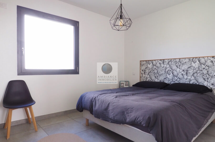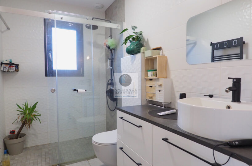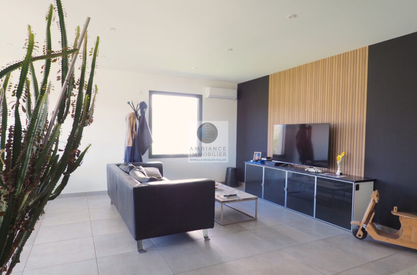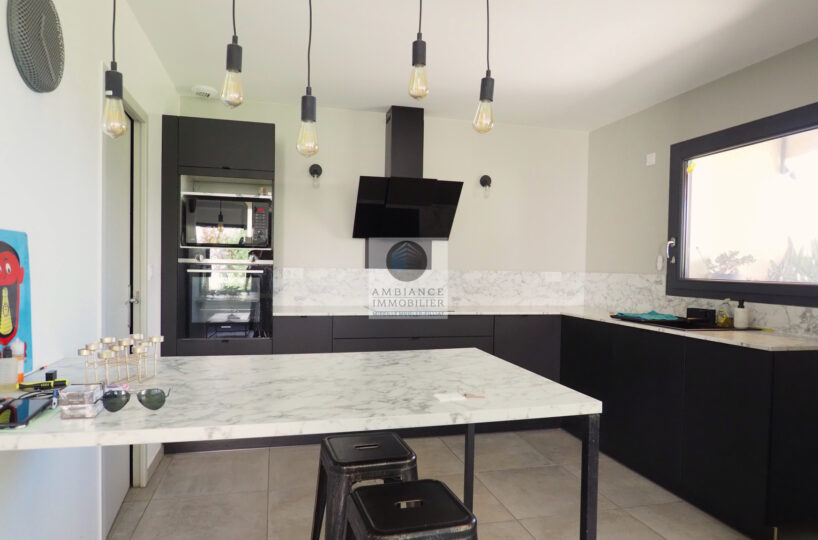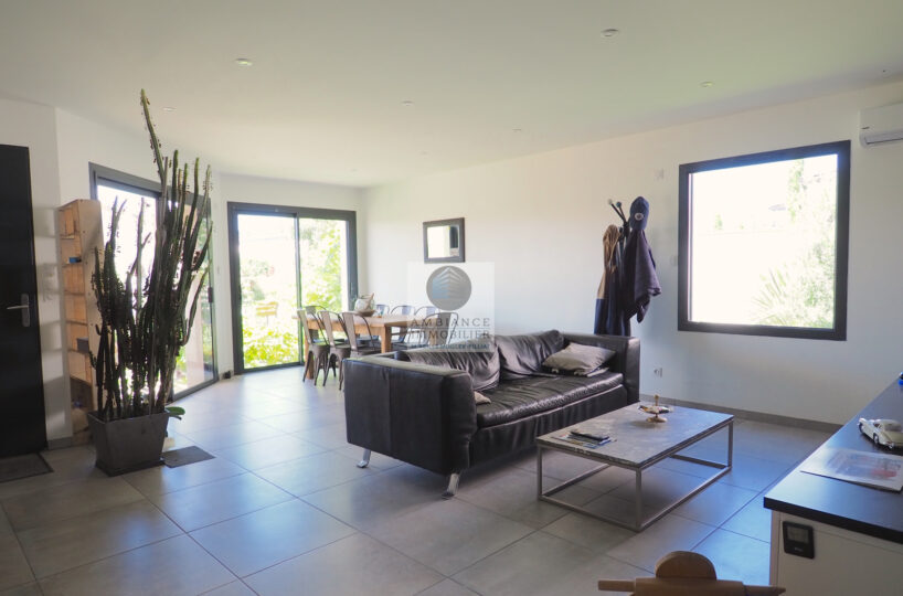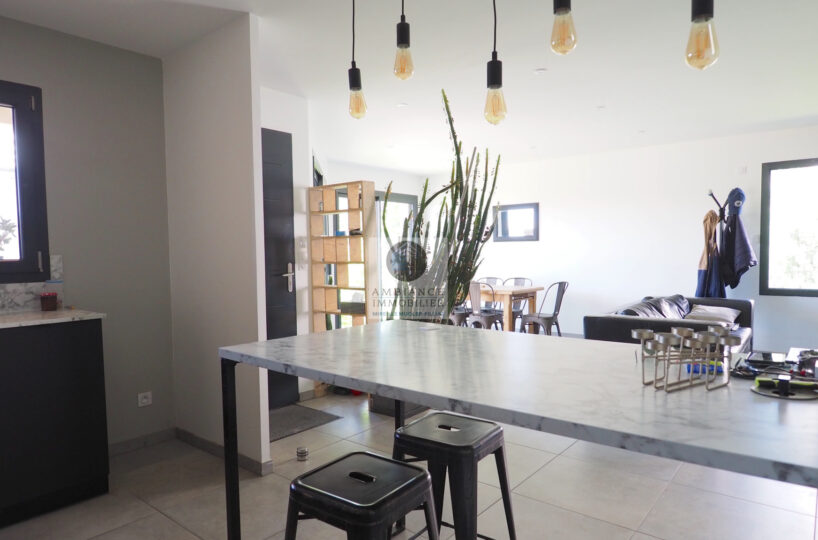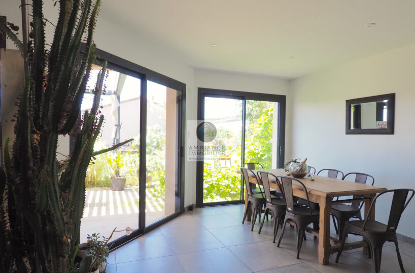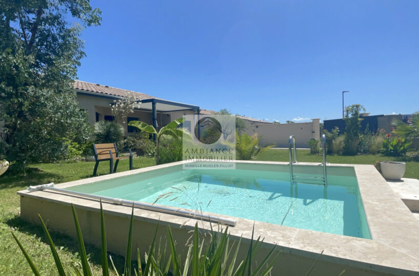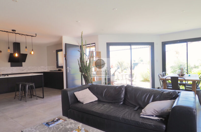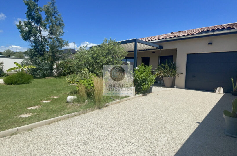 CHARMES-SUR-RHONE, le calme, la luminosité, une conception agréable, de belles prestations, une ambiance contemporaine et chaleureuse pour cette maison de plain-pied de 92m2. Une pièce de vie de 43m2 : cuisine intégrée à 1/2 ouverte sur le séjour-salon, buanderie. Un espace nuit avec 3 chambres, salle d’eau avec vasque et douche à l’italienne. Garage de 21m2 – parkings. Chauffage au gaz par le sol + climatisation réversible – huisseries alu et pvc avec centralisation des volets.