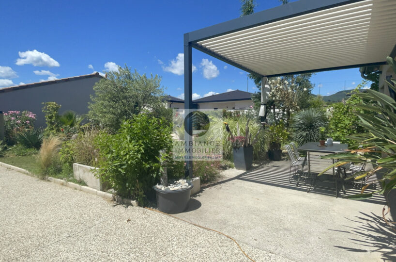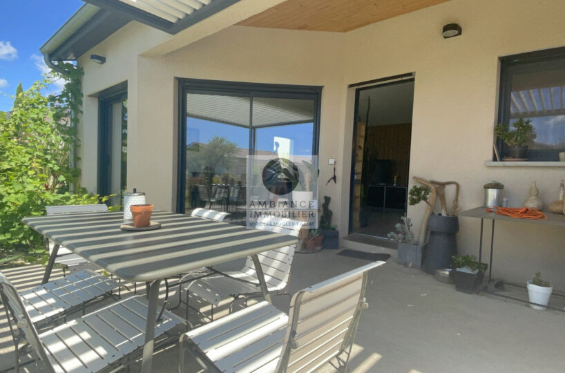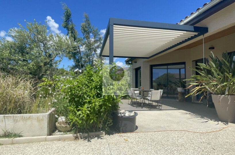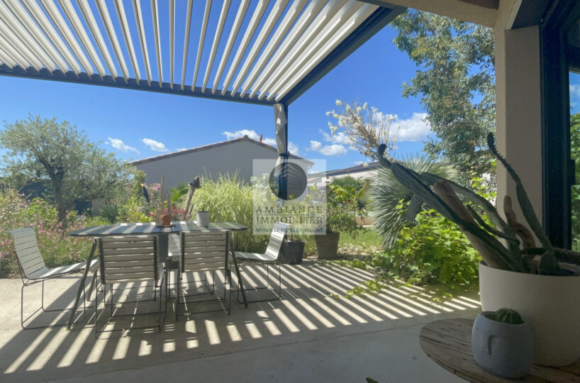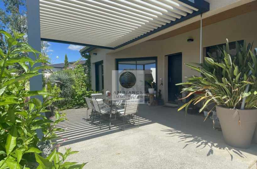 Une belle ambiance de terrasse avec pergola bio-climatique.