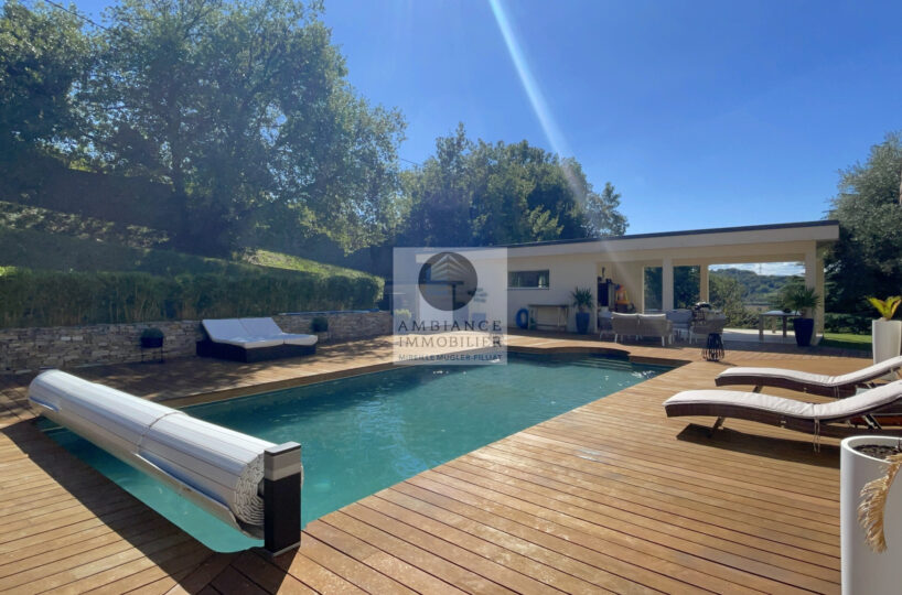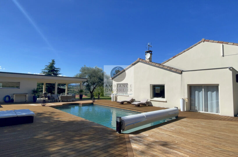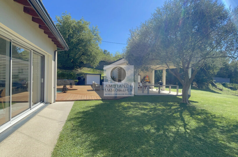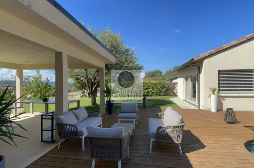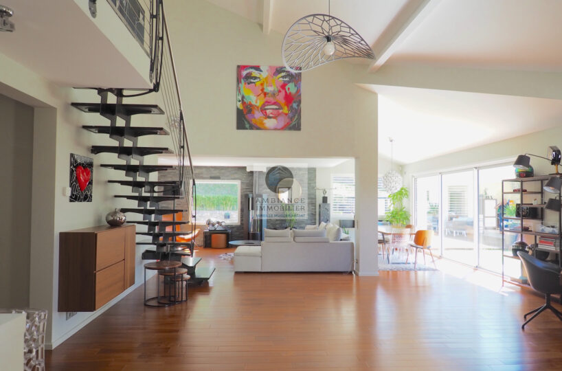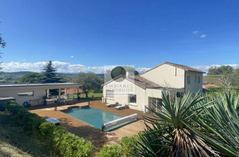 TAIN L’HERMITAGE, en exclusivité, à 10mn de la sortie autoroute, dans le charmant village de CLERIEUX, sur les hauteurs avec une vue magnifique sur la campagne, la luminosité, de beaux volumes, de superbes prestations, une ambiance contemporaine et chaleureuse pour cette maison d’architecte de 218m2 avec une maison d’amis indépendante de 22m2.