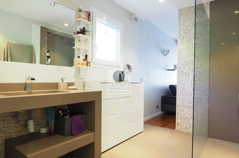 Chauffage par le sol et climatisation réversible – huisseries en alu – volets électriques et BSO –