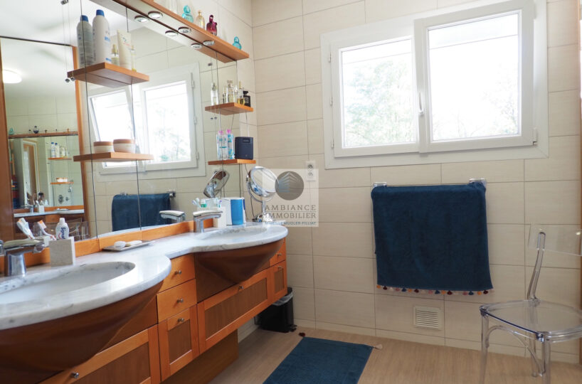 Un espace nuit desservi par un dégagement aménagé en dressing et bibliothèque, 4 chambres avec salle de bains privatives dont 1 suite parentale de 31m2 avec dressing et salle d’eau.