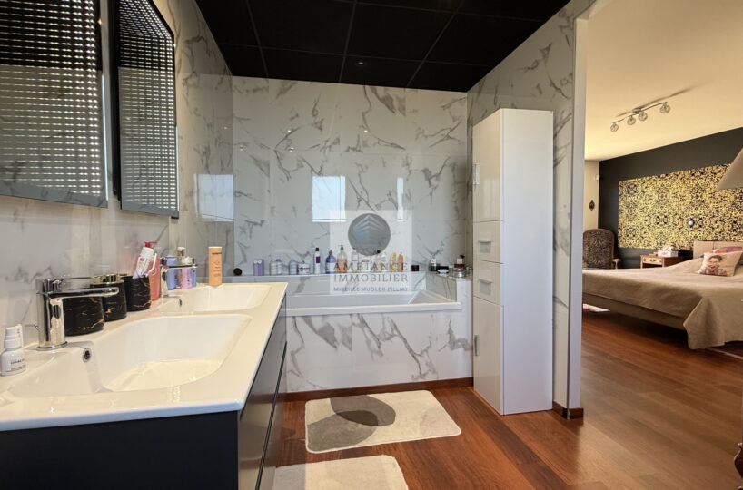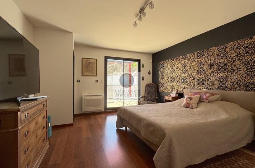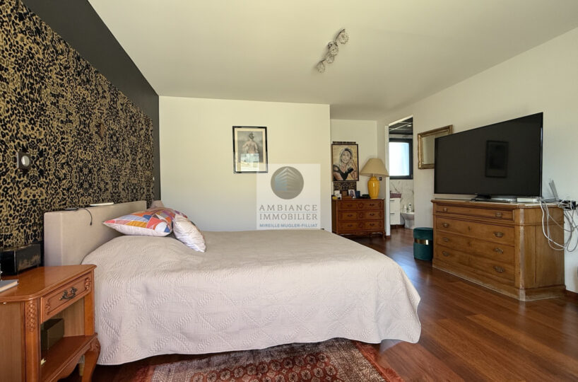 Au 1er étage : une suite parentale de 32m2 avec accès à une terrasse de 13m2 :une chambre avec dressing de 24m2 et une salle de bains.