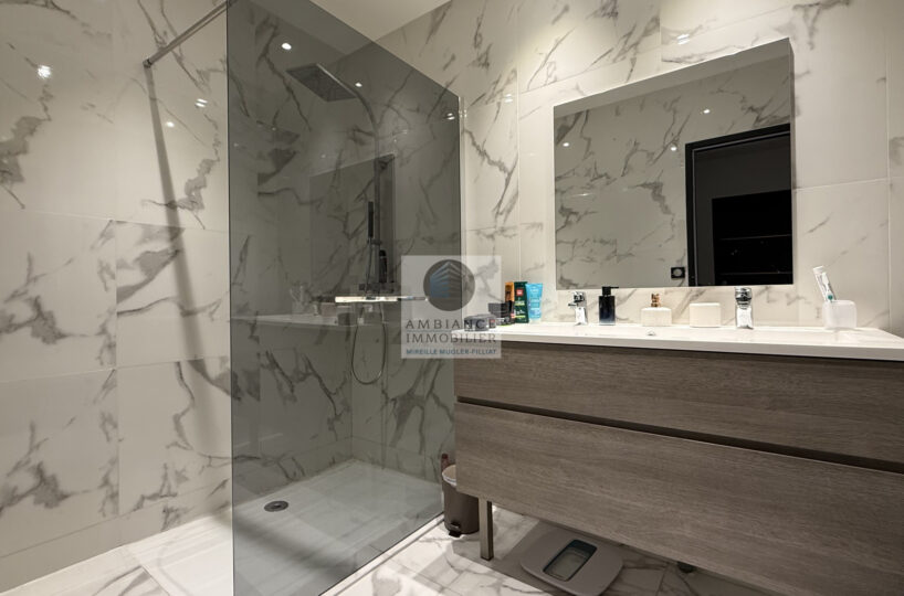 Chauffage par pompe à chaleur : plancher chauffant/rafraîchissant et climatisation réversible – huisseries en alu et pvc – centralisation des volets – alarme.