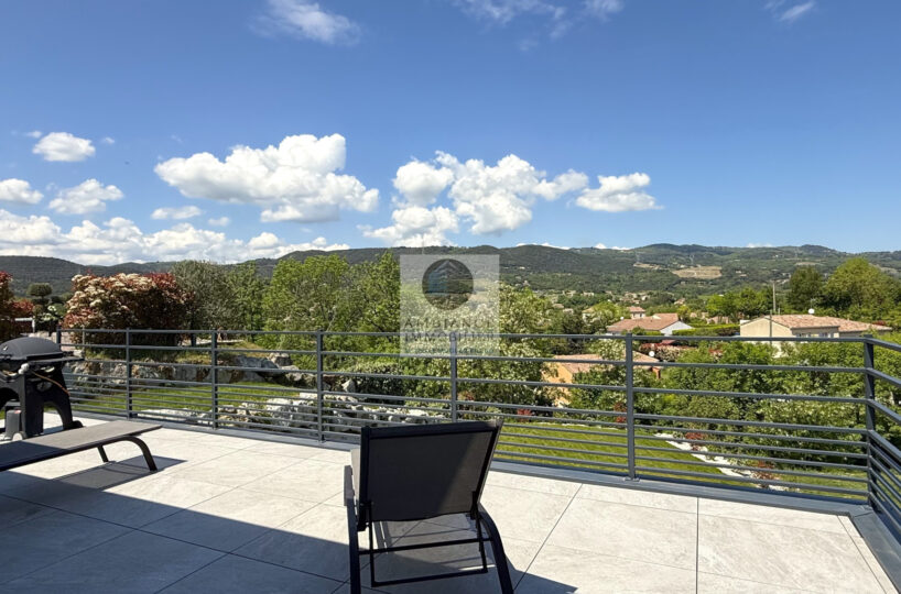 SAINT-PERAY, en exclusivité, dans un quartier résidentiel en position dominante, le calme, la luminosité, de beaux volumes, une ambiance contemporaine et chaleureuse pour cette maison d’architecte de 323m2 sur une parcelle de