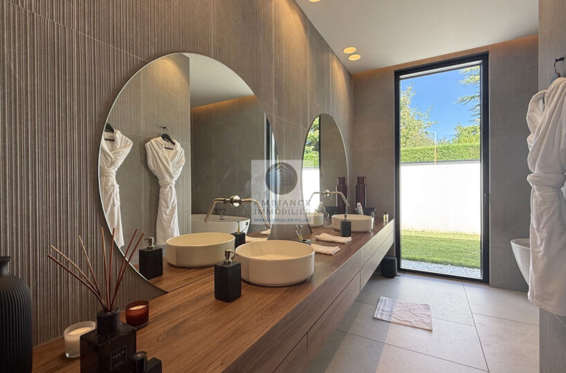 Chauffage par pompe à chaleur en gainable – huisseries en alu – domotique – alarme – système audio Sonos.